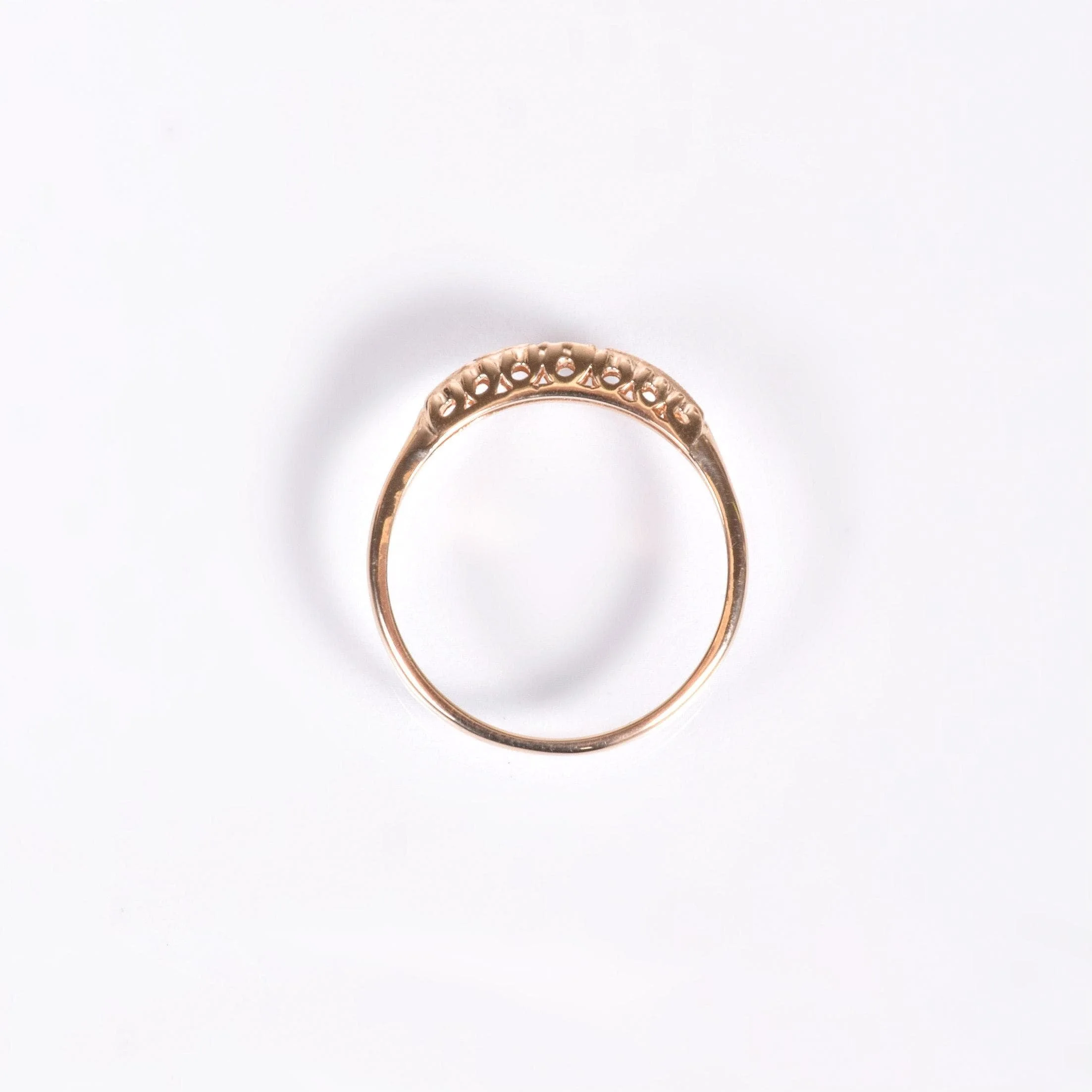 This one is a little sweetie! Coming from the 1930's, this ring is actually "new old stock" which simply means that it has never been owned! It was never sold and was obtained by us from an old time jeweler. A tiny sparkling diamond accentuates the center. This treasure was crafted in a rosy yellow gold can be worn as a promise ring, a wedding band or even as your engagement ring!