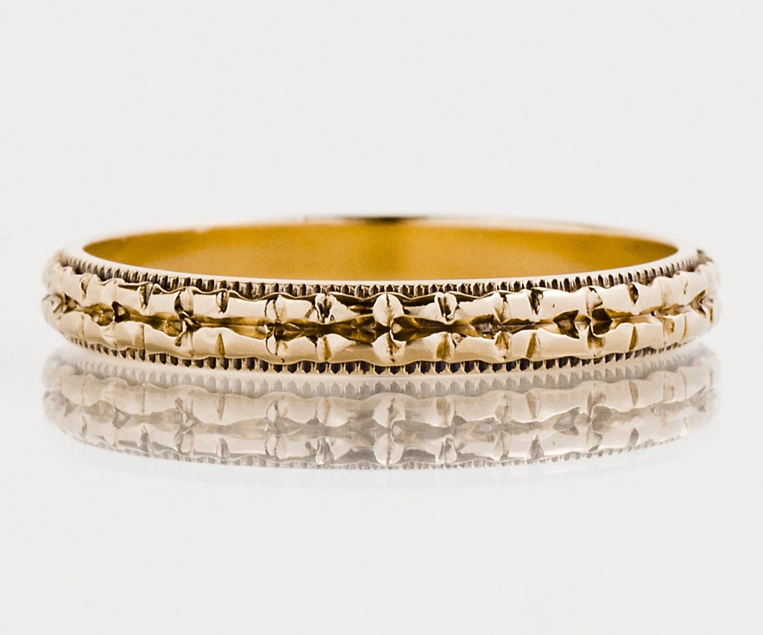 Antique Wedding Band - Antique 14k Yellow Gold Etched Eternity Band