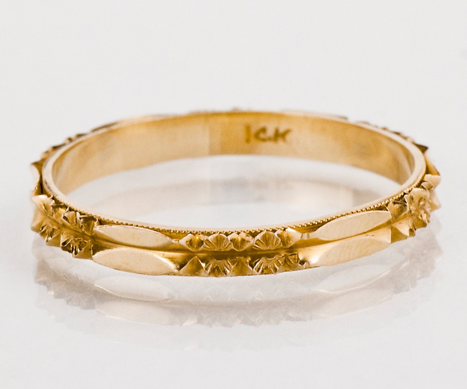 Antique Wedding Band - Antique 14k Yellow Gold Etched Wedding Band