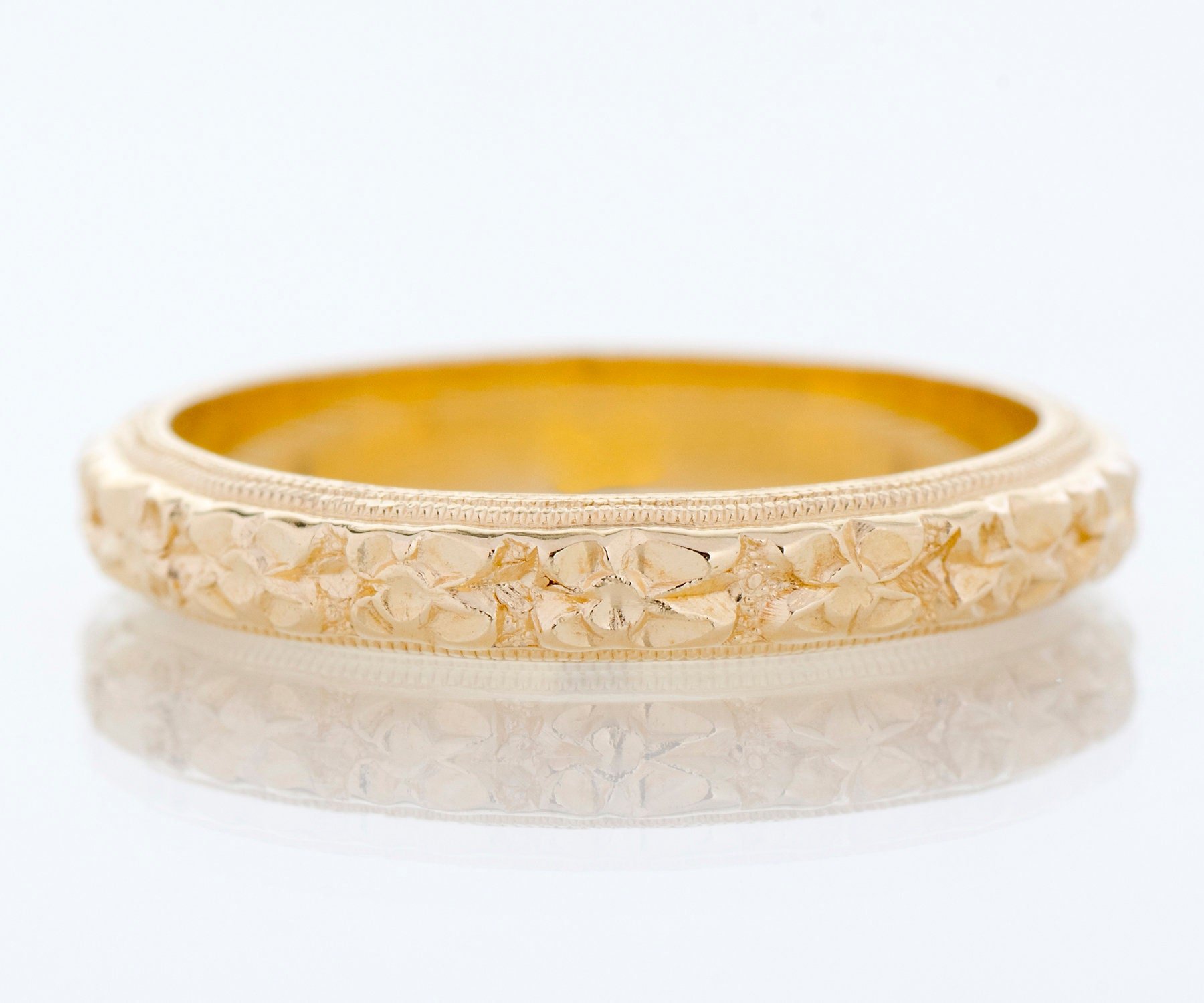 Antique Wedding Band - Antique 14k Yellow Gold Floral Engraved Wedding Band