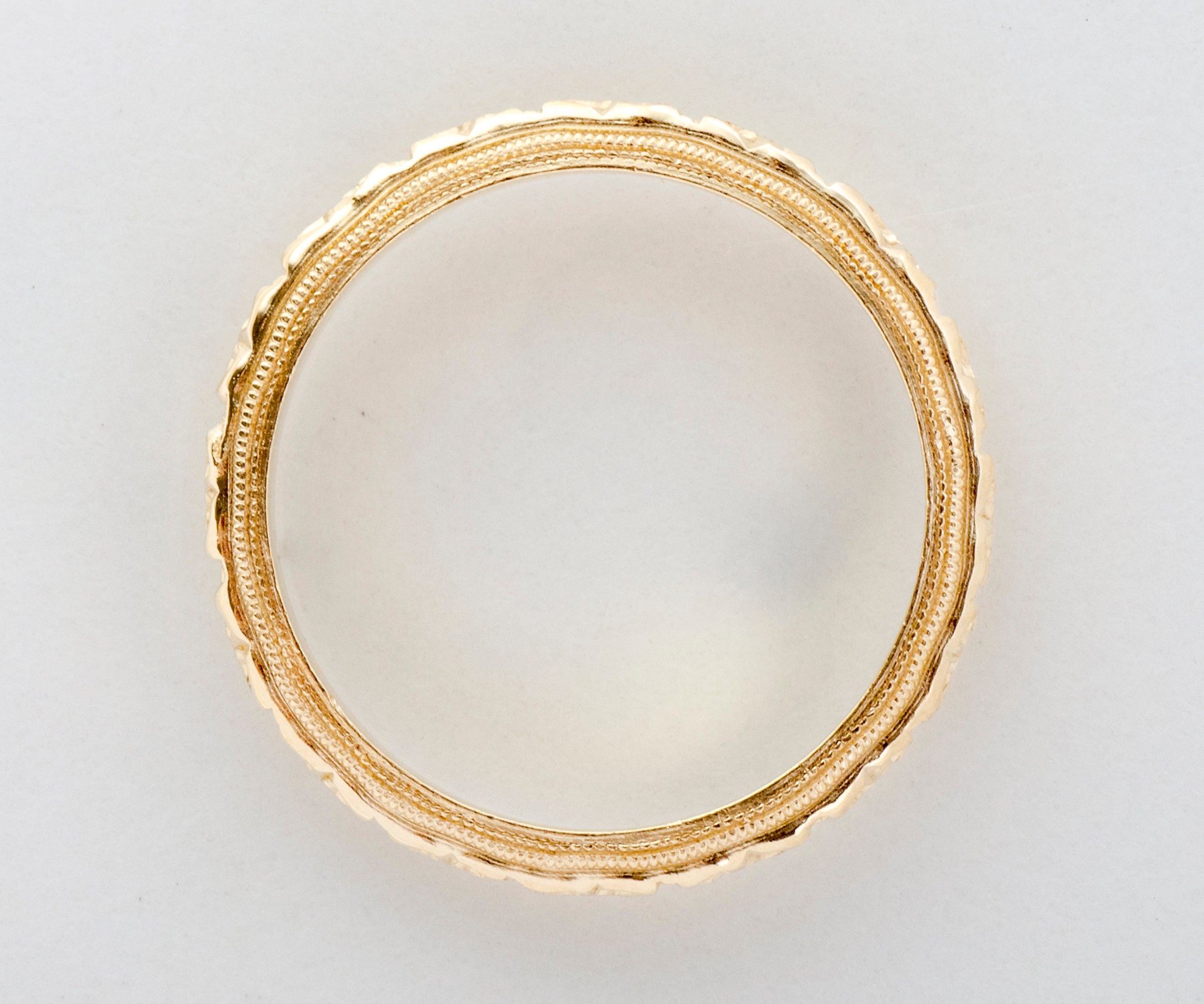 Antique Wedding Band - Antique 14k Yellow Gold Floral Engraved Wedding Band