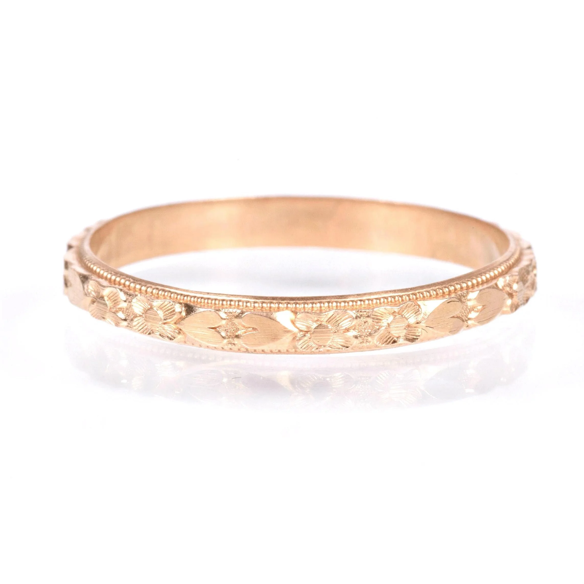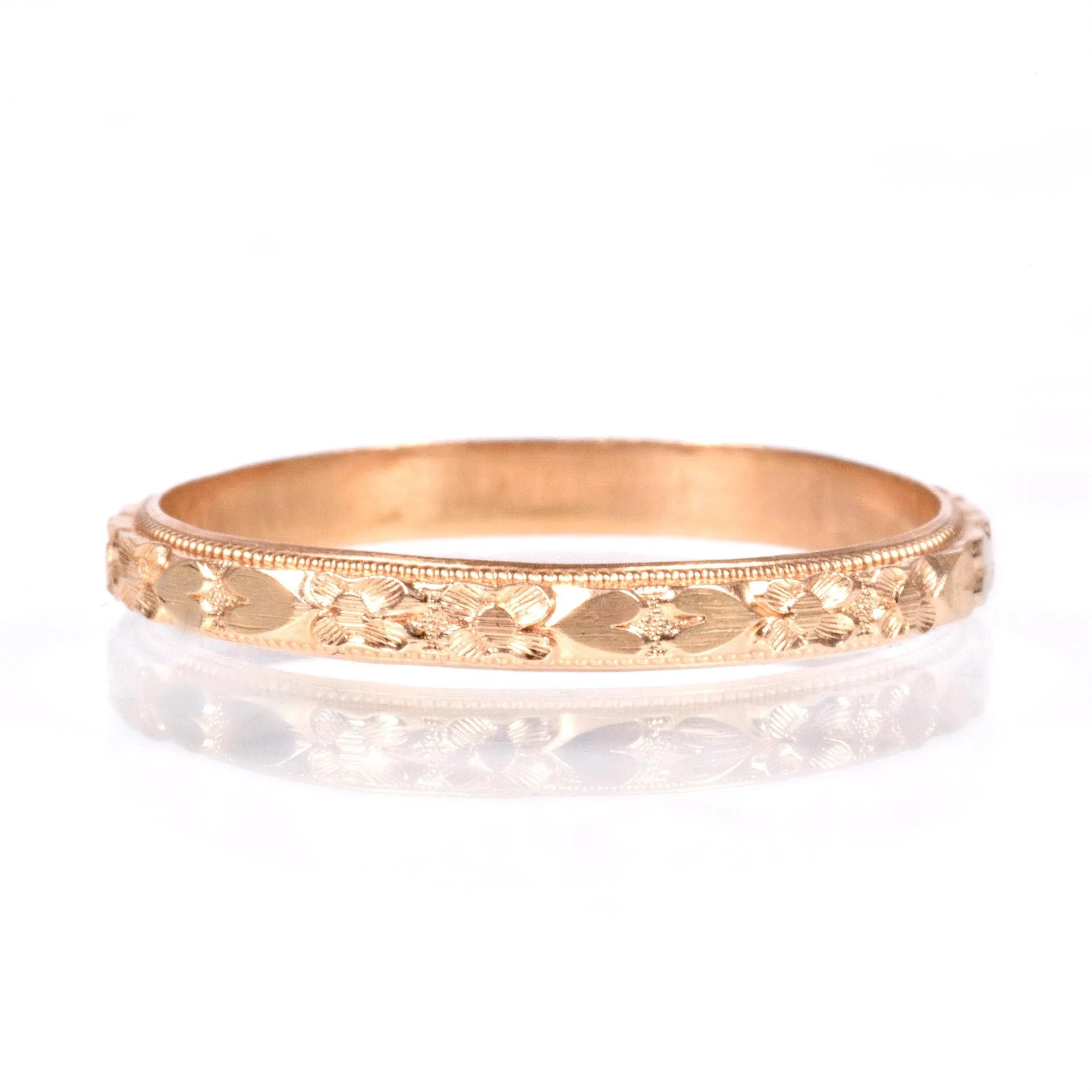 Antique Wedding Band - Antique 14k Yellow Gold Hearts & Flowers Wedding Band