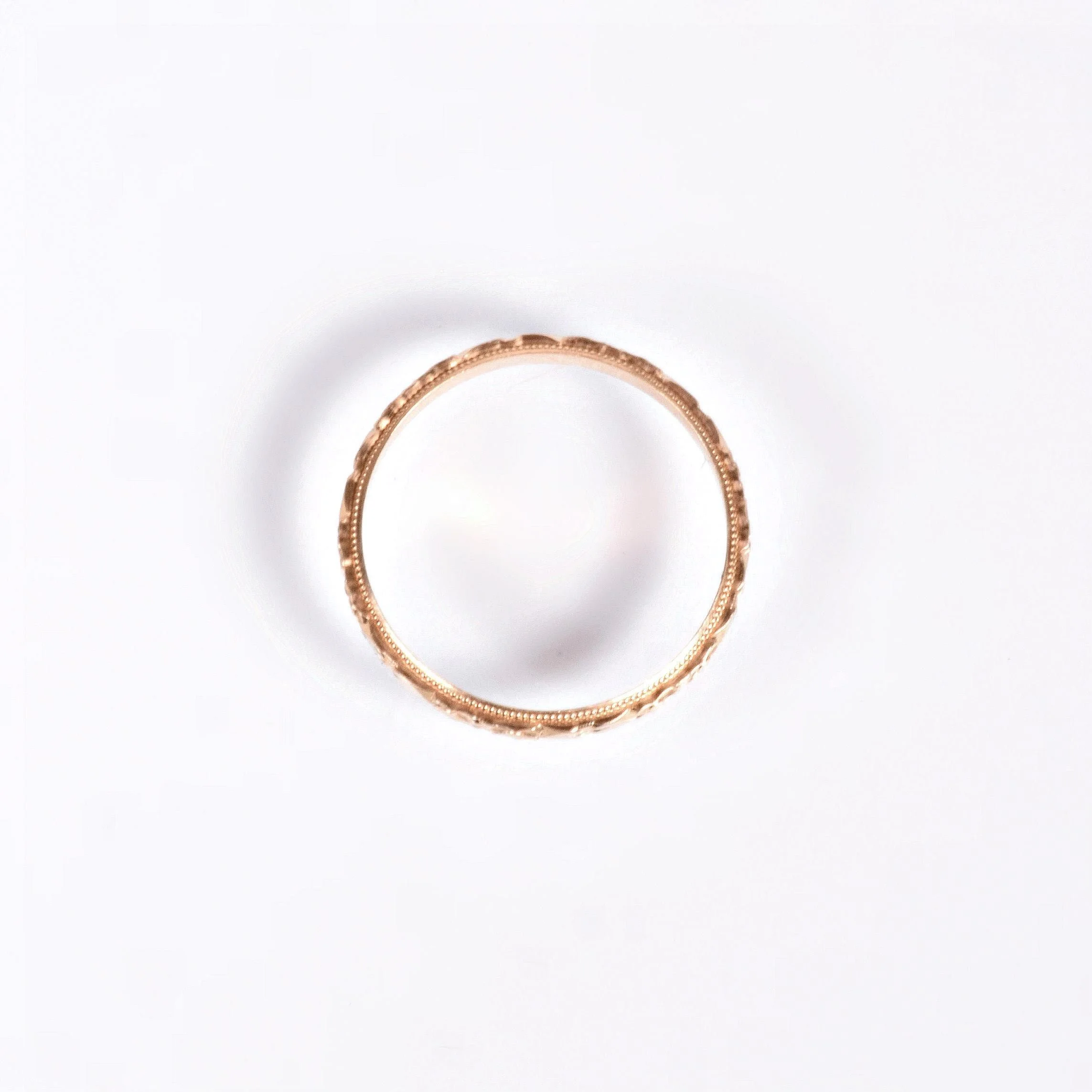 Antique Wedding Band - Antique 14k Yellow Gold Hearts & Flowers Wedding Band