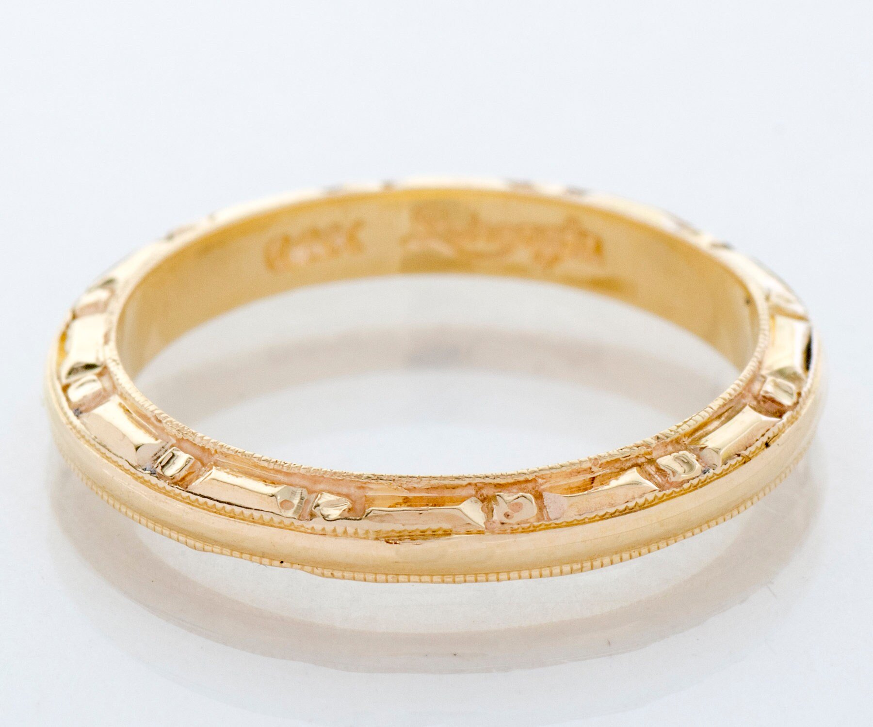 Antique Wedding Band - Antique 14k Yellow Gold "Lohengrin" Engraved Wedding Band