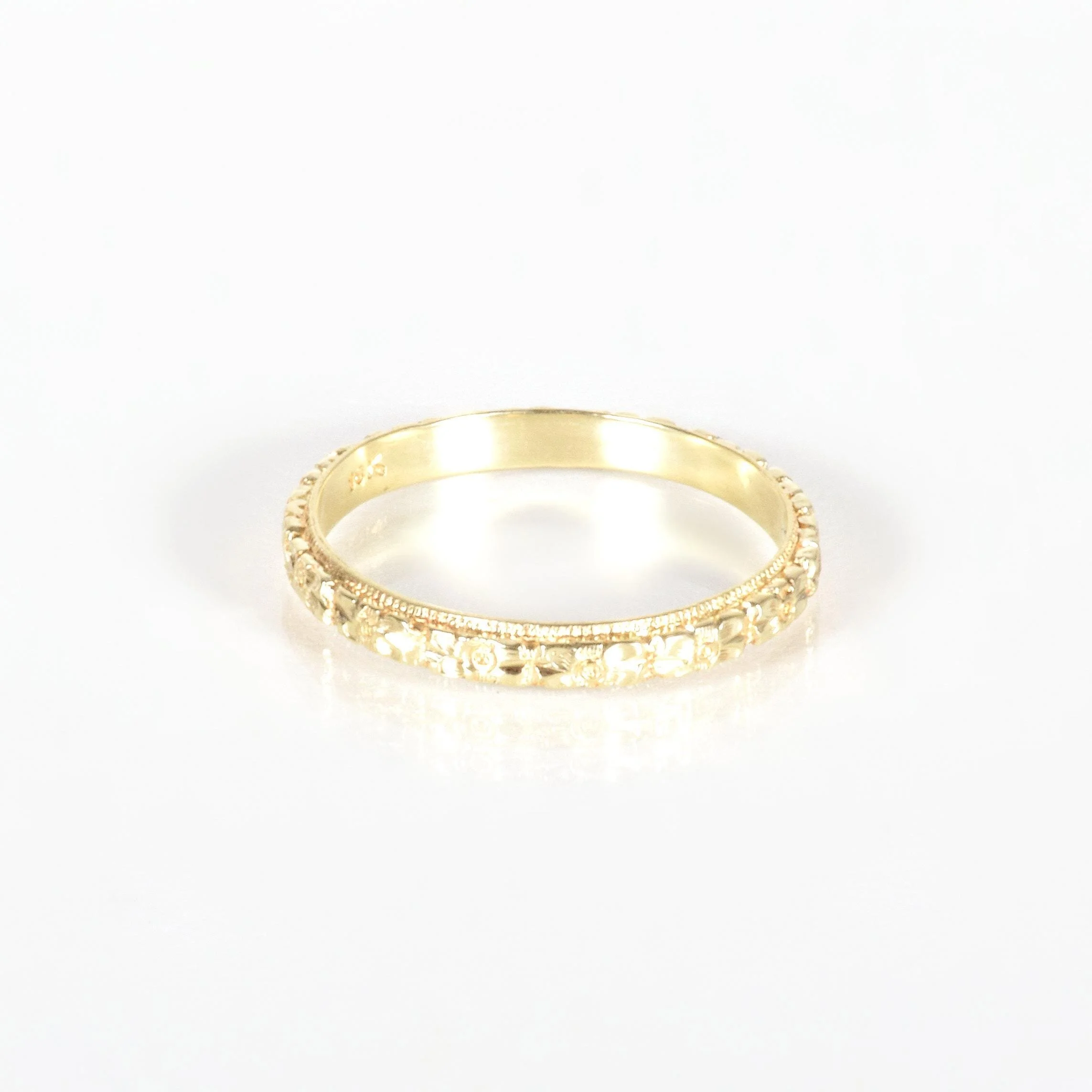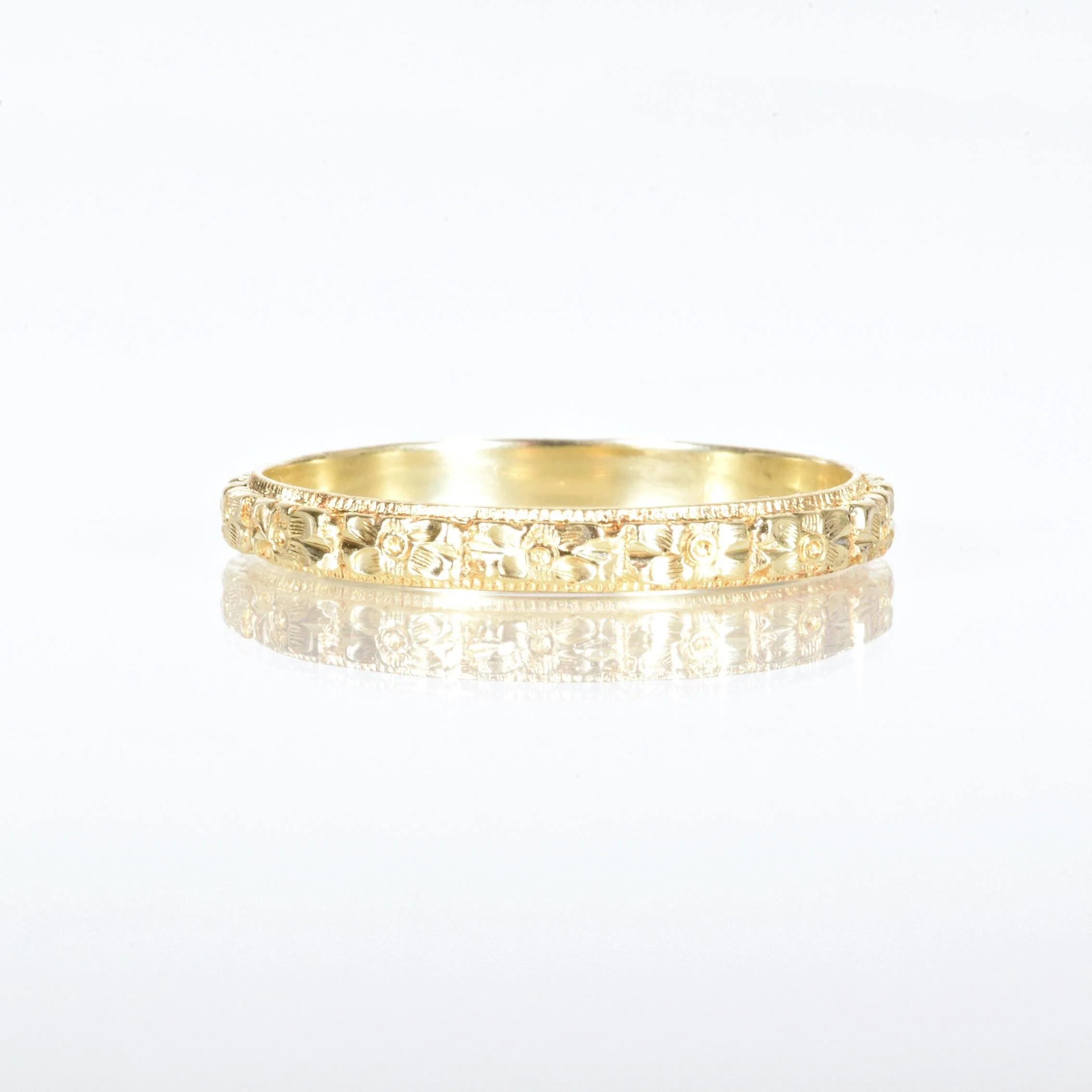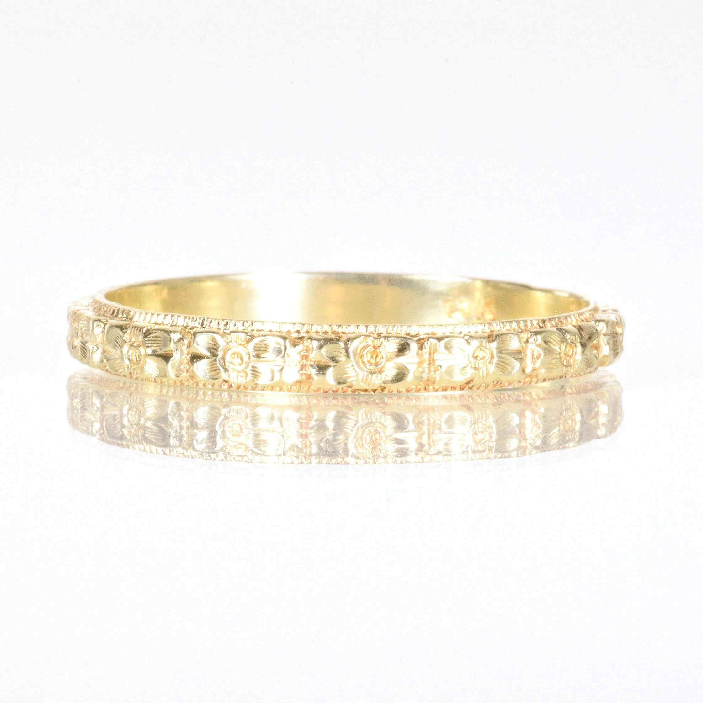 Antique Wedding Band - Antique 18k Green Gold Floral Engraved Wedding Band