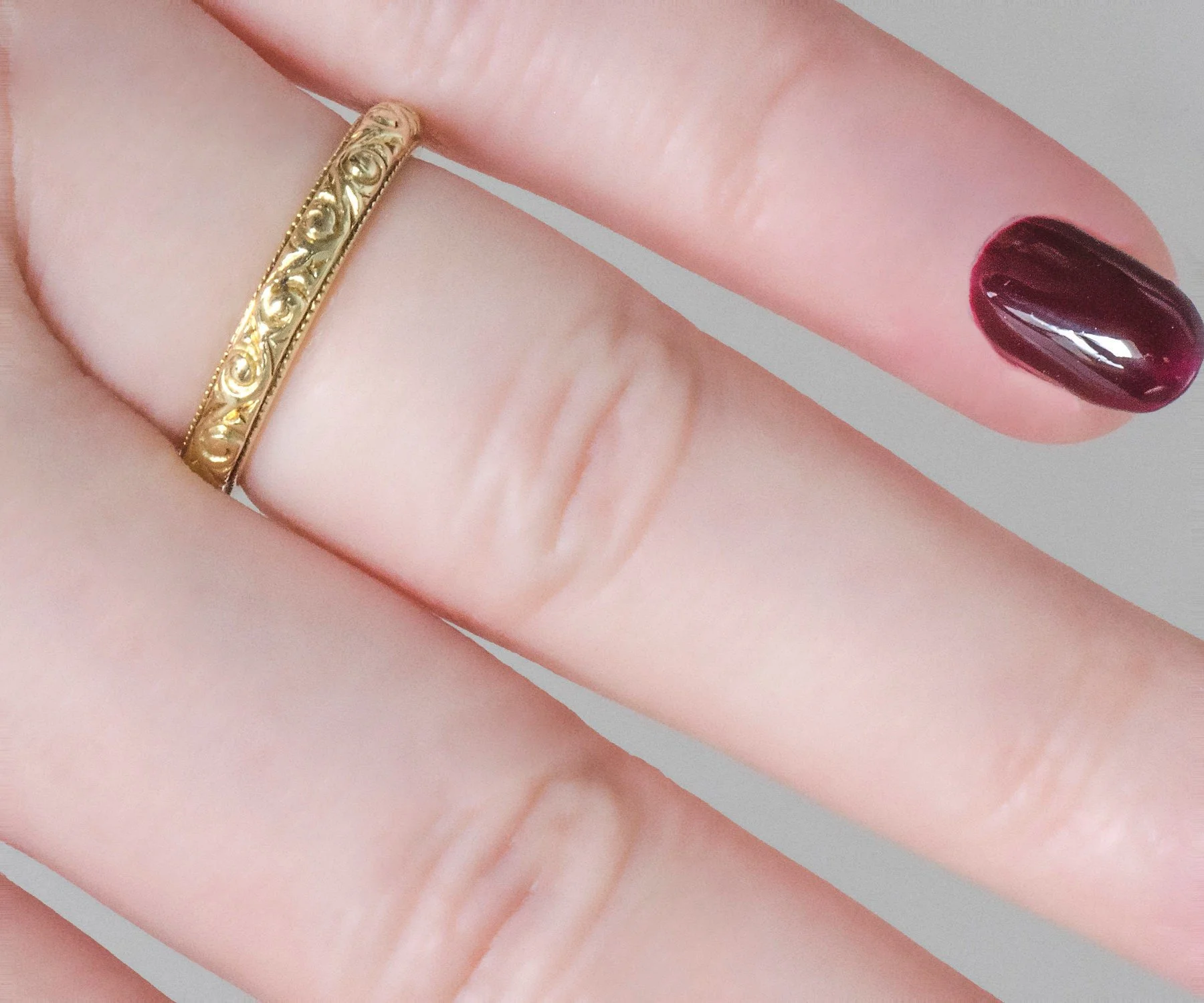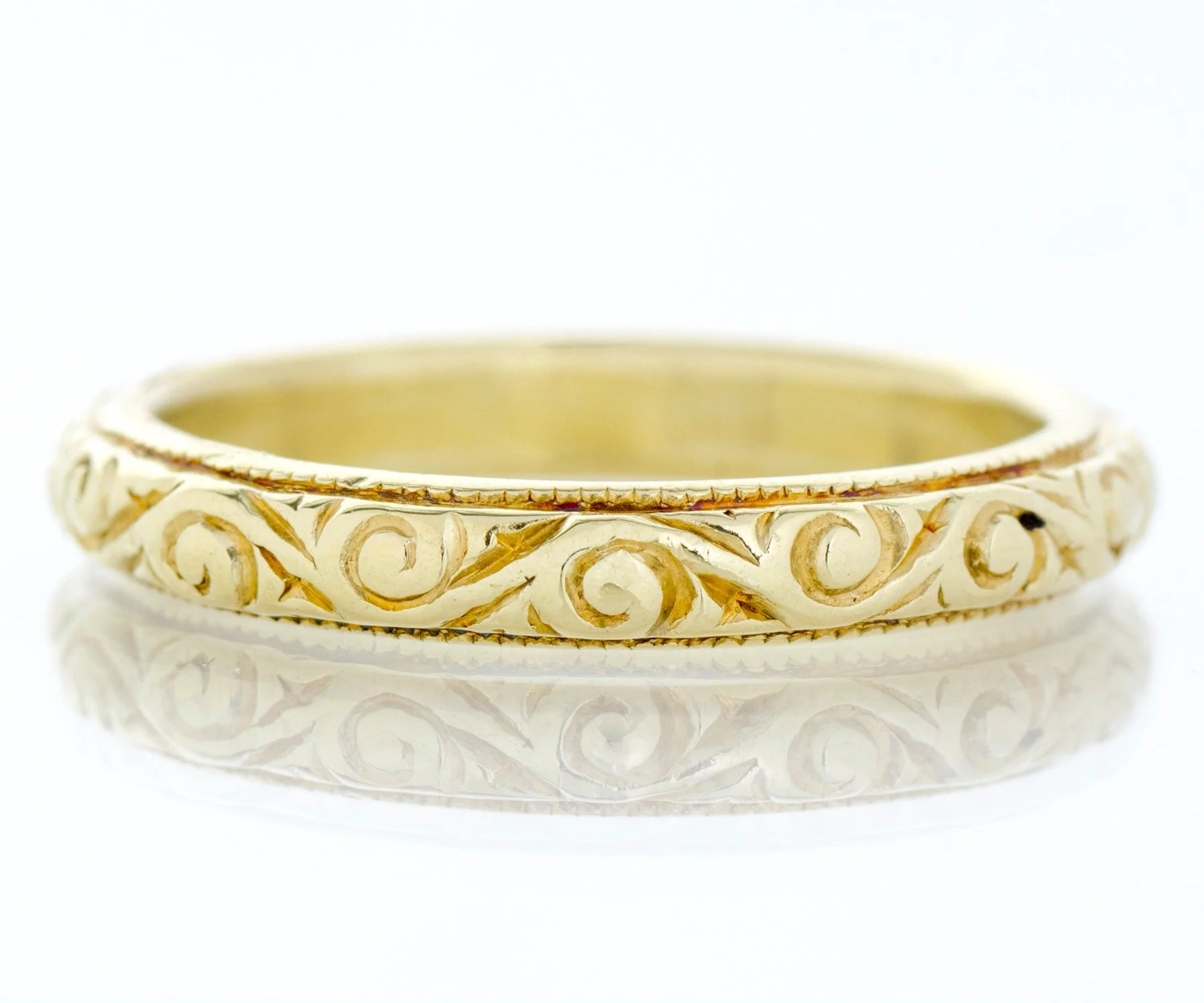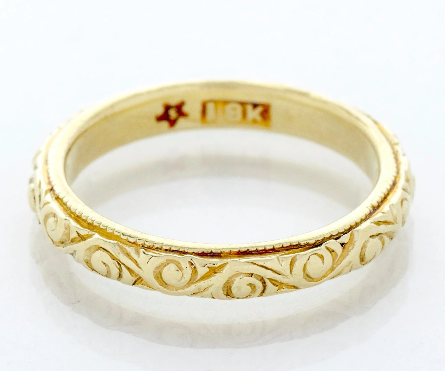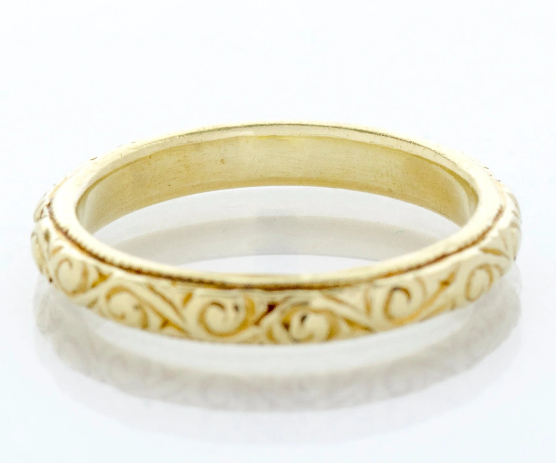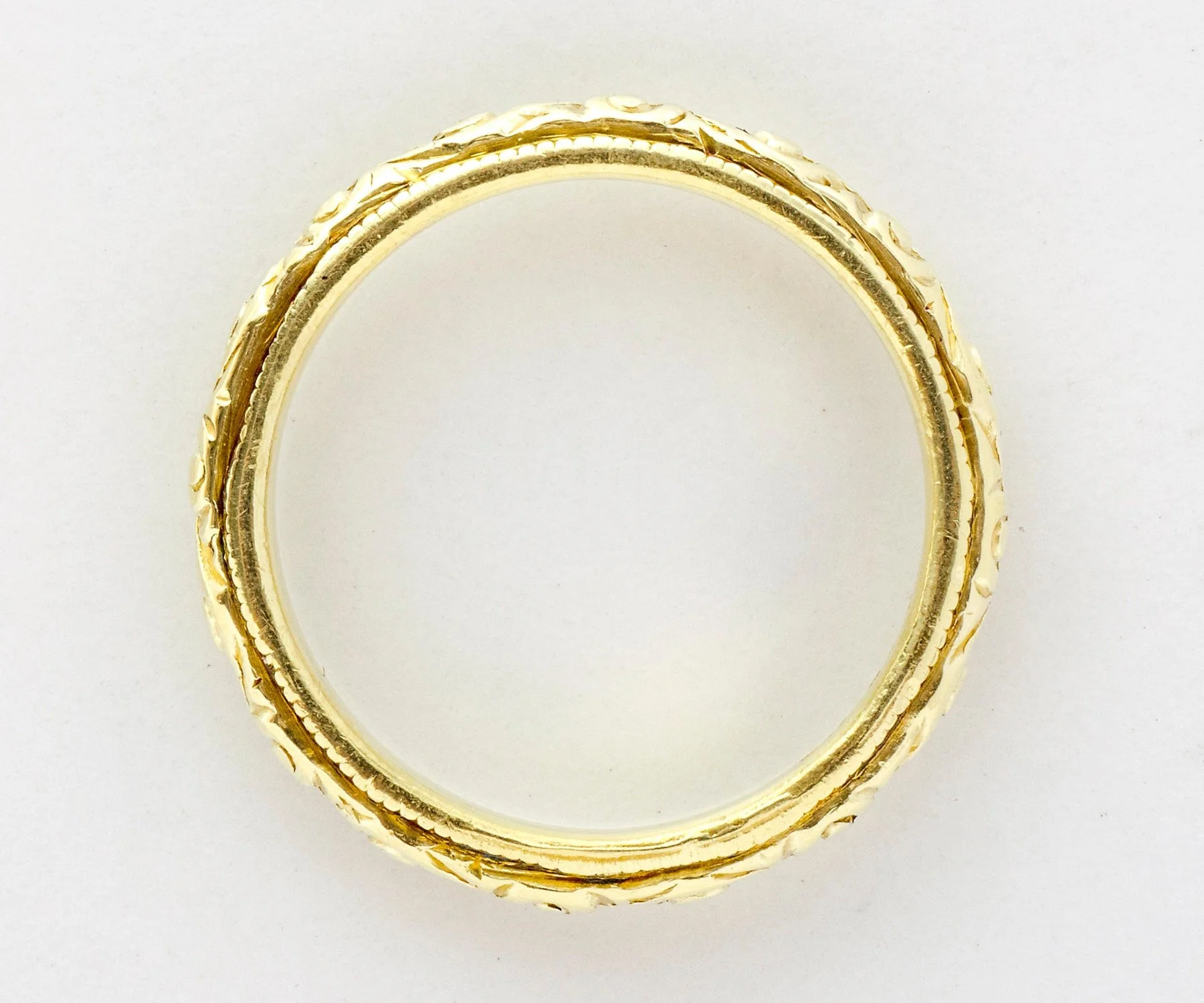 Antique Wedding Band - Antique 18k Greenish Yellow Gold Engraved Wedding Band