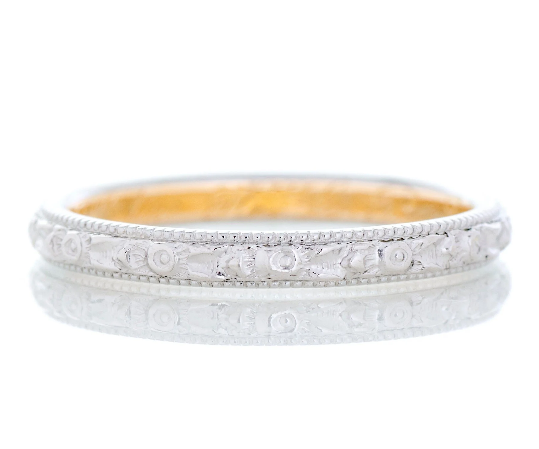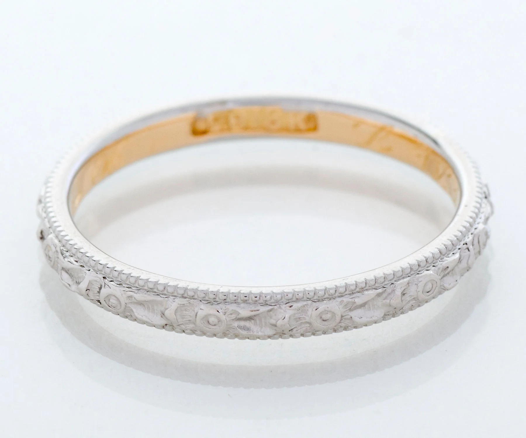 Antique Wedding Band - Antique 18k Two-Tone Date Engraved 1906 Wedding Band
