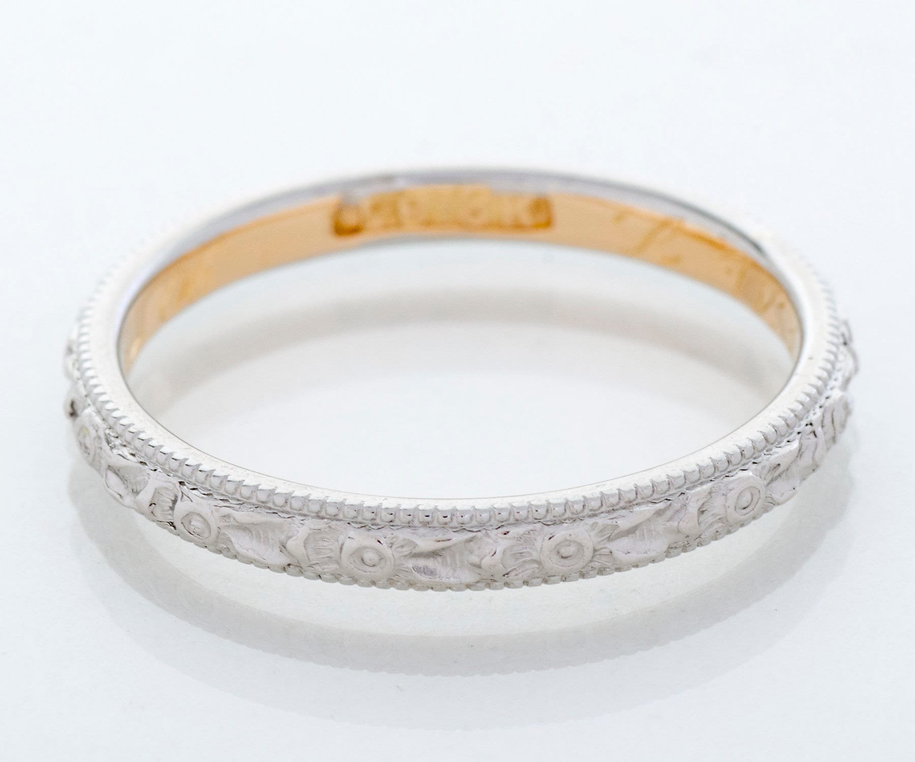 Antique Wedding Band - Antique 18k Two-Tone Date Engraved 1906 Wedding Band