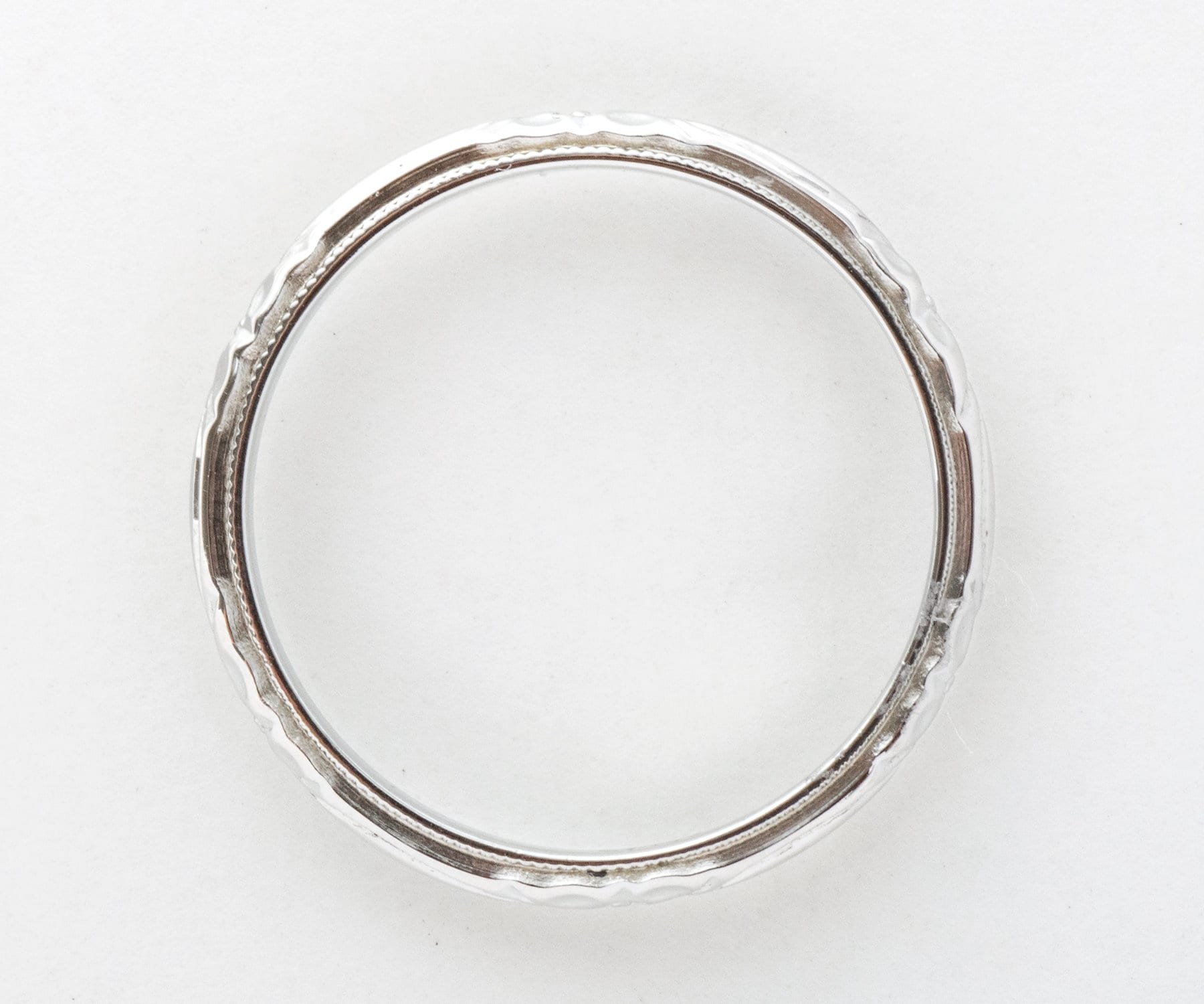 Antique Wedding Band - Antique 18k White Gold Belais Engraved Wedding Band