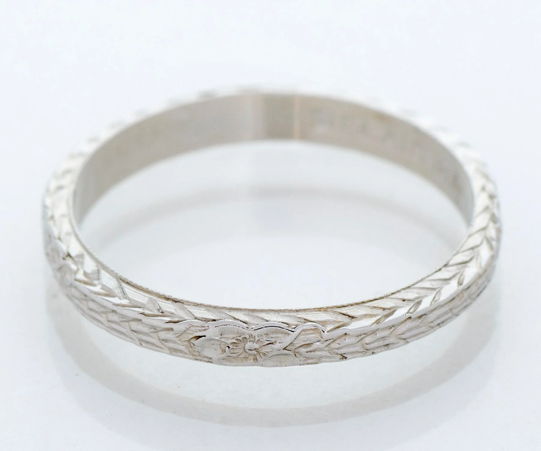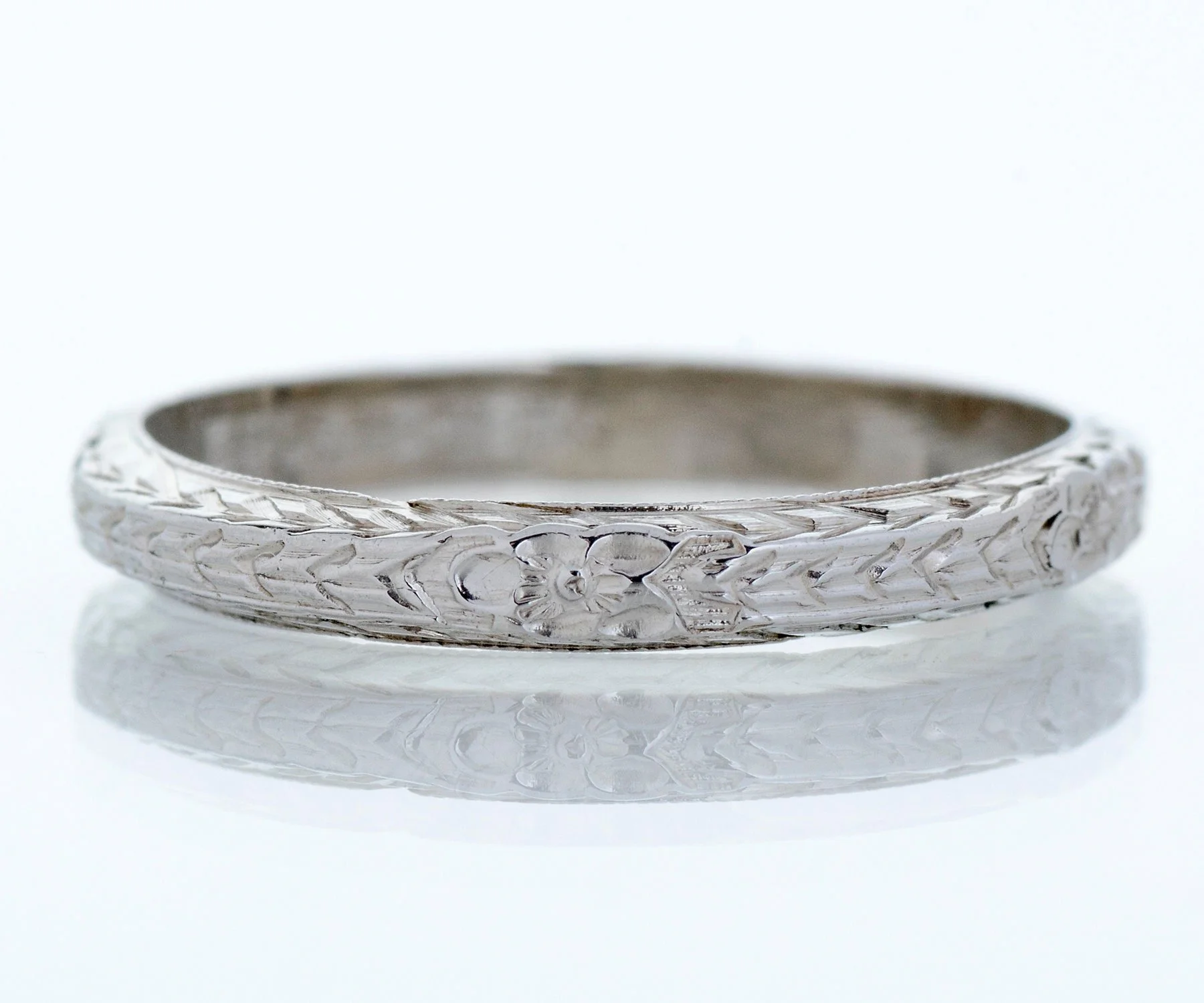 Antique Wedding Band - Antique 18k White Gold Belais Engraved Wedding Band