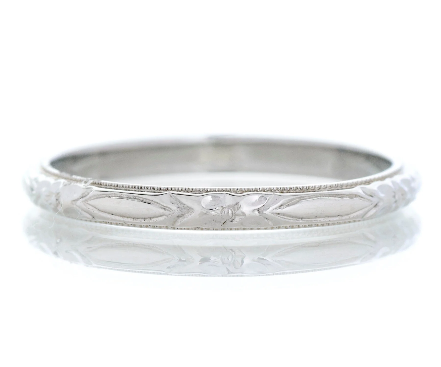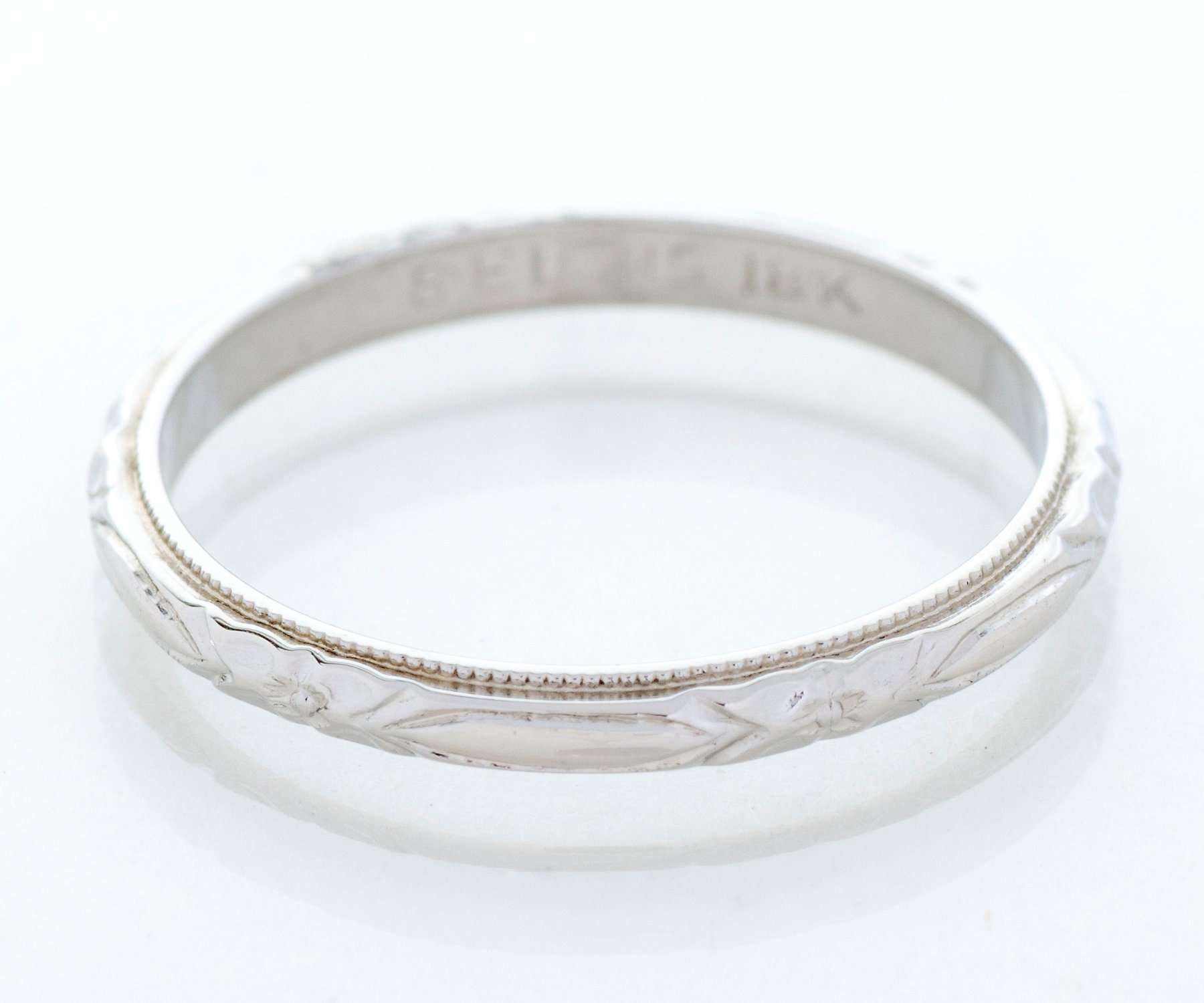 Antique Wedding Band - Antique 18k White Gold Belais Engraved Wedding Band
