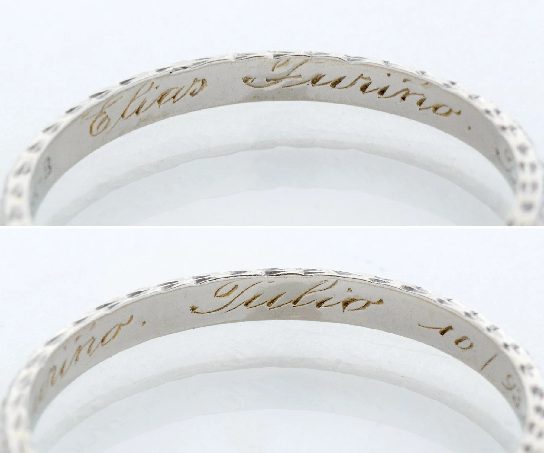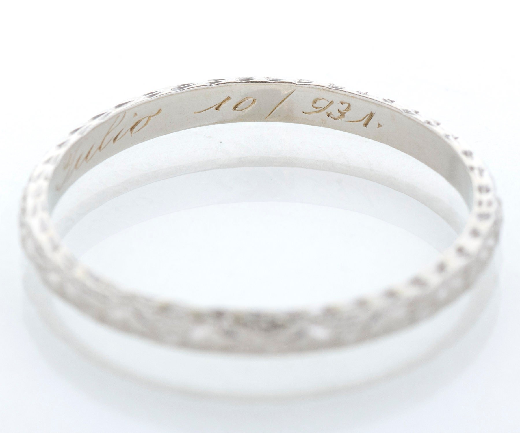Antique Wedding Band - Antique 18k White Gold Date Engraved "1931" Wedding Band 18k White Gold Engraved "Elias Furino Julio 10 9 31" Ring Size 7 Band measures approximately 2mm wide.