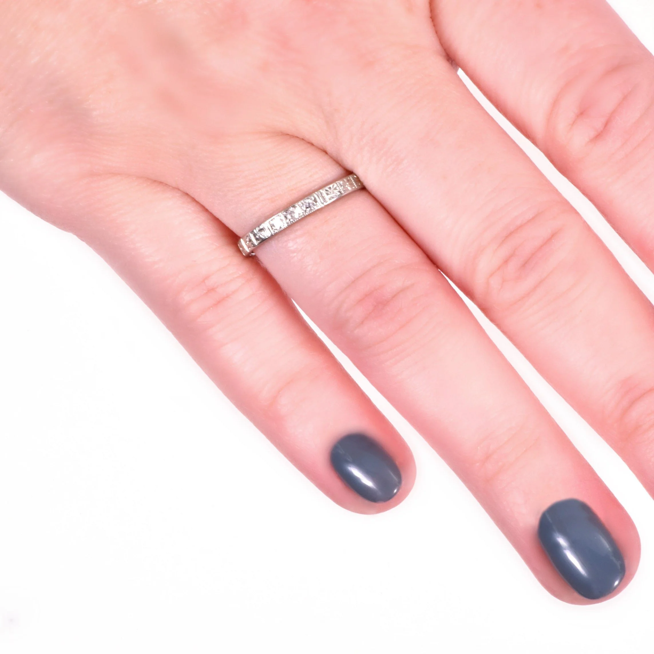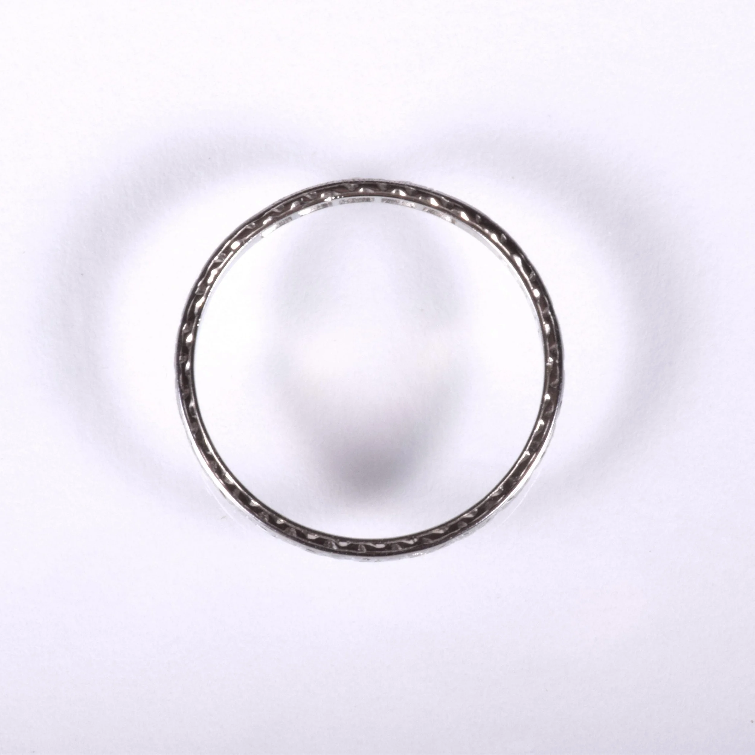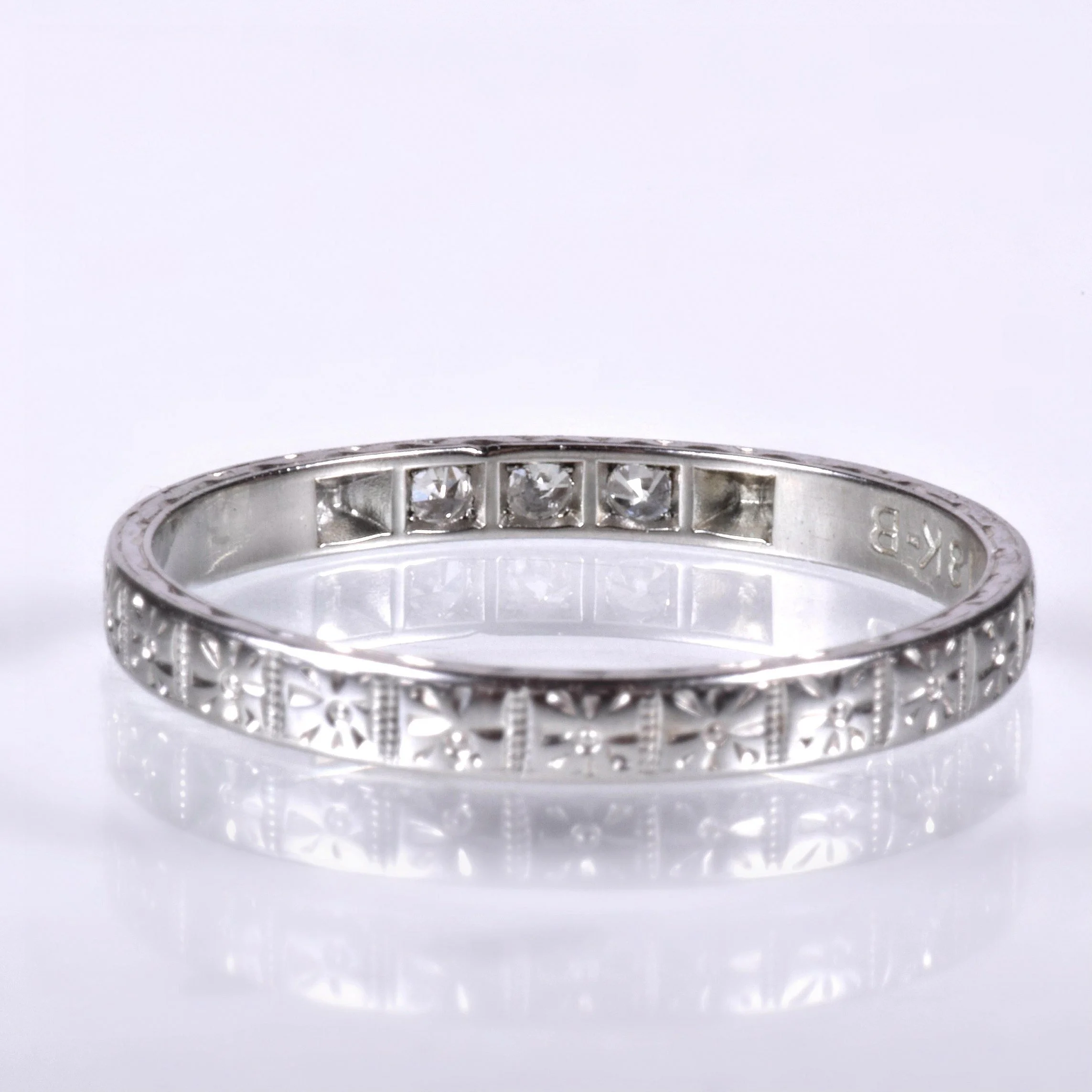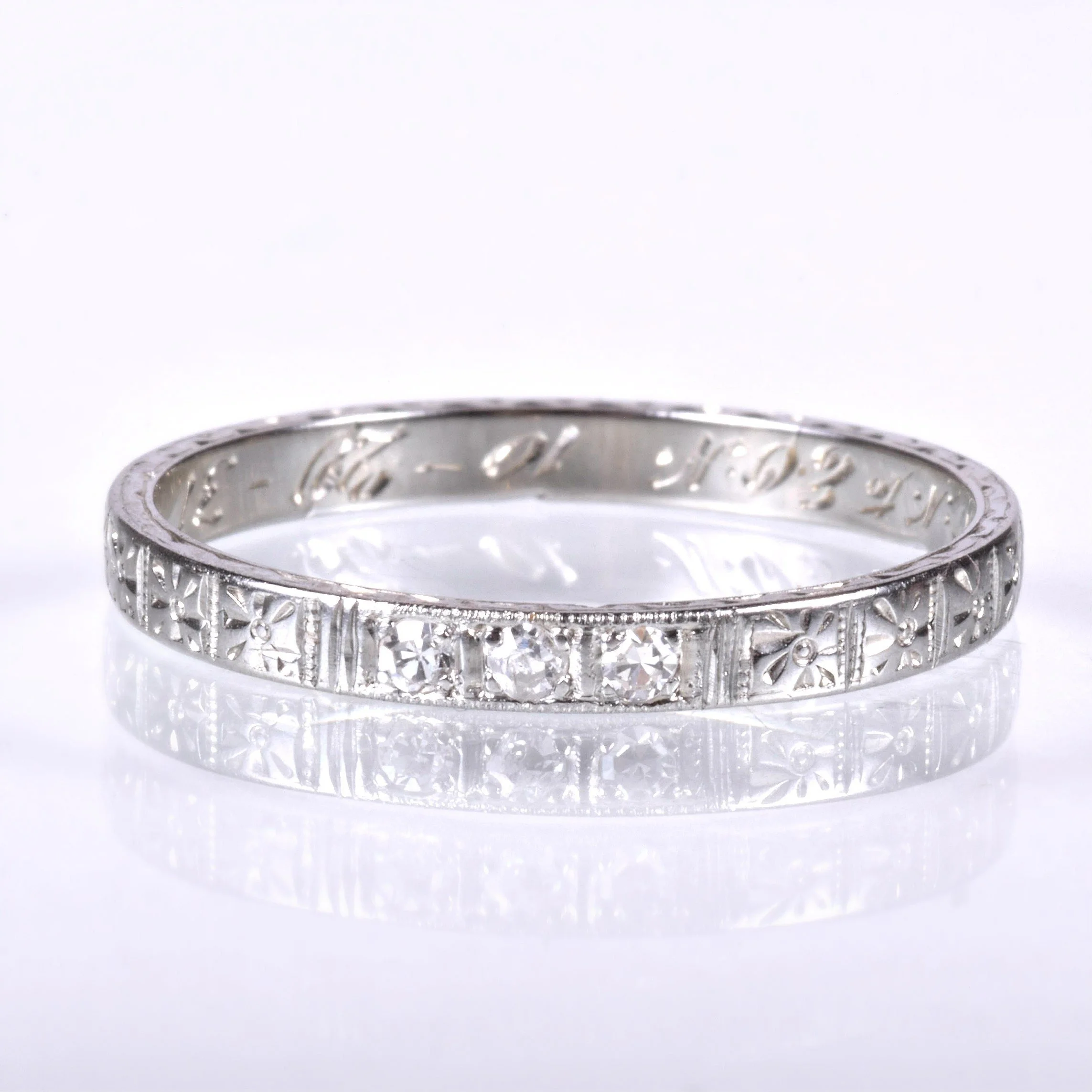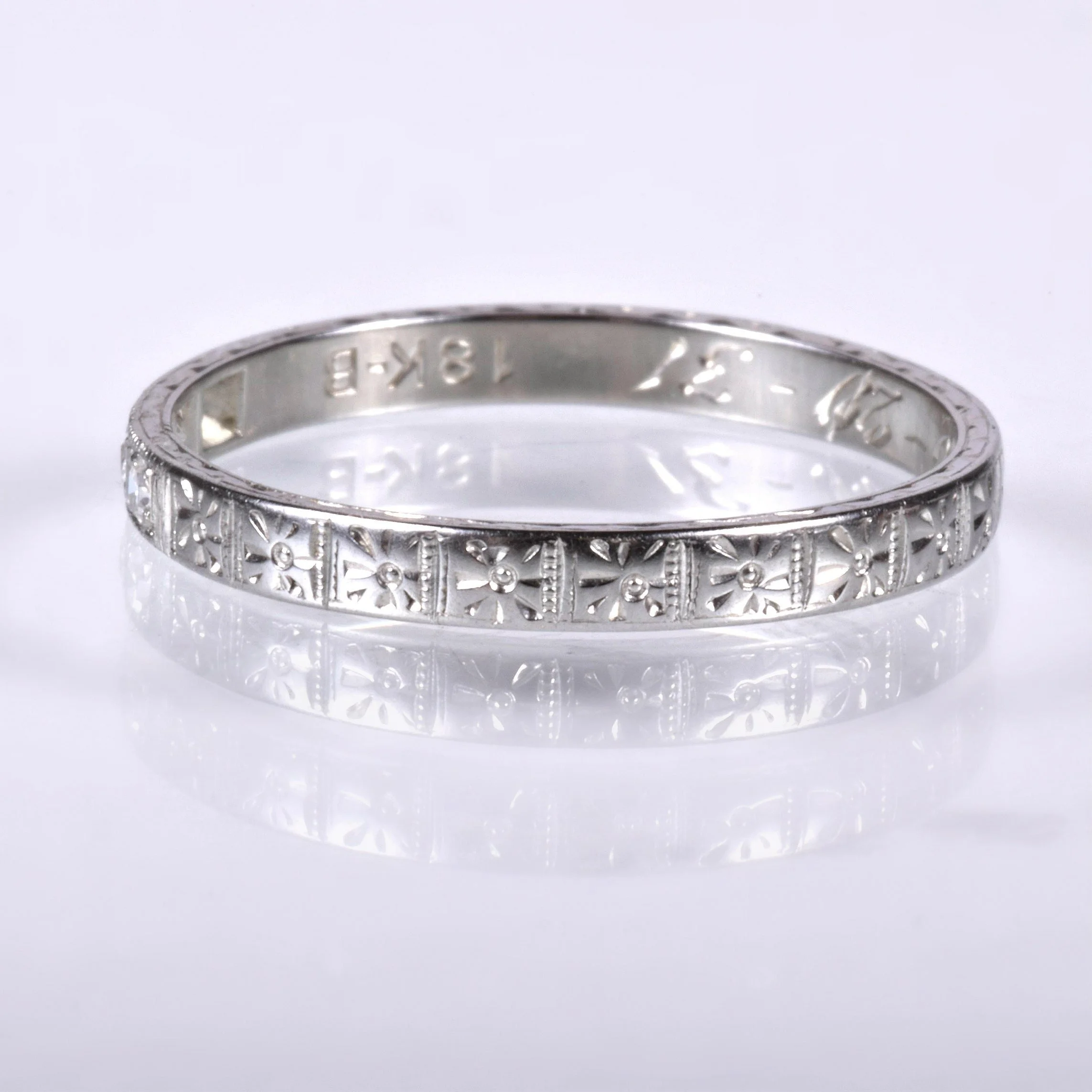 Antique Wedding Band - Antique 18k White Gold Diamond Band Engraved 1931