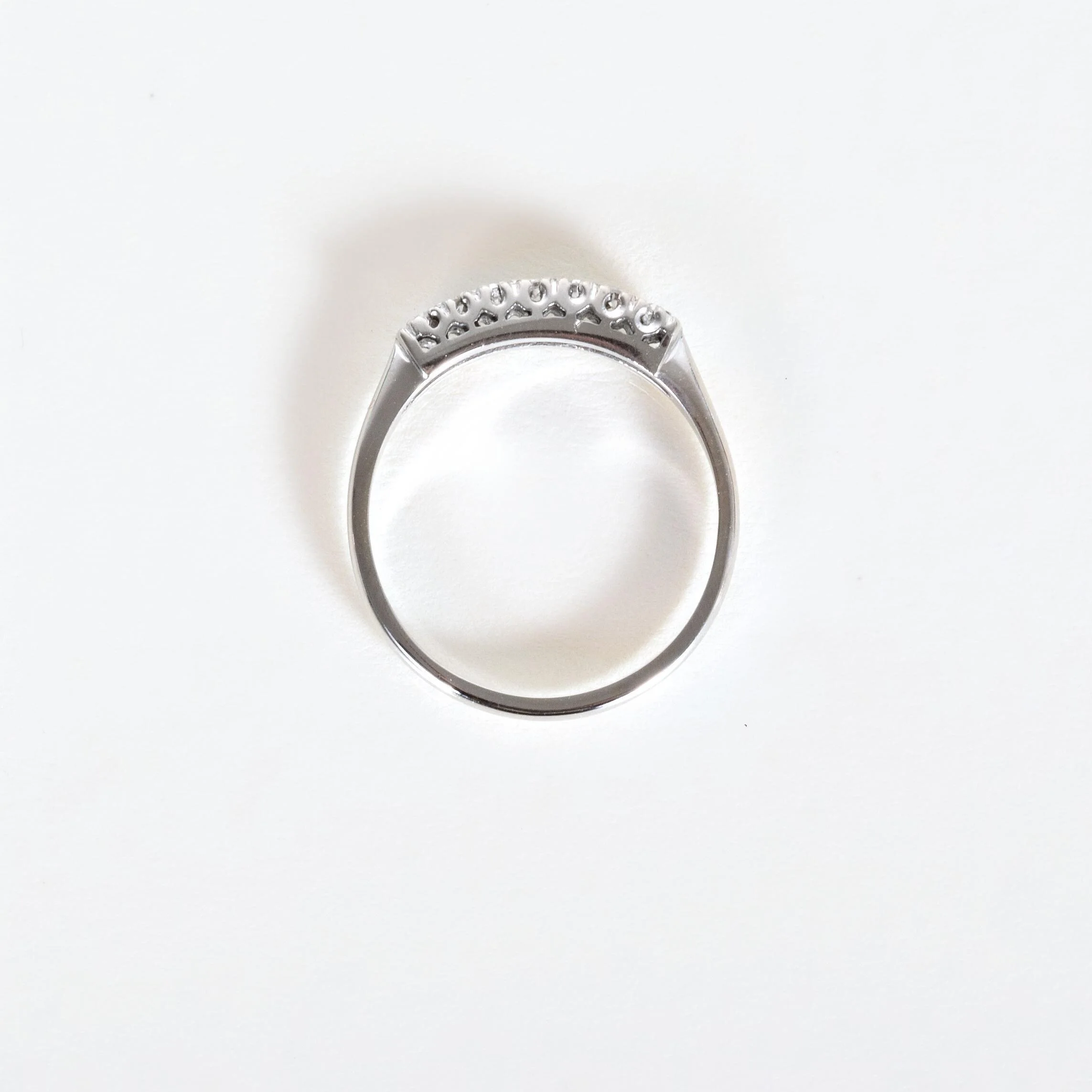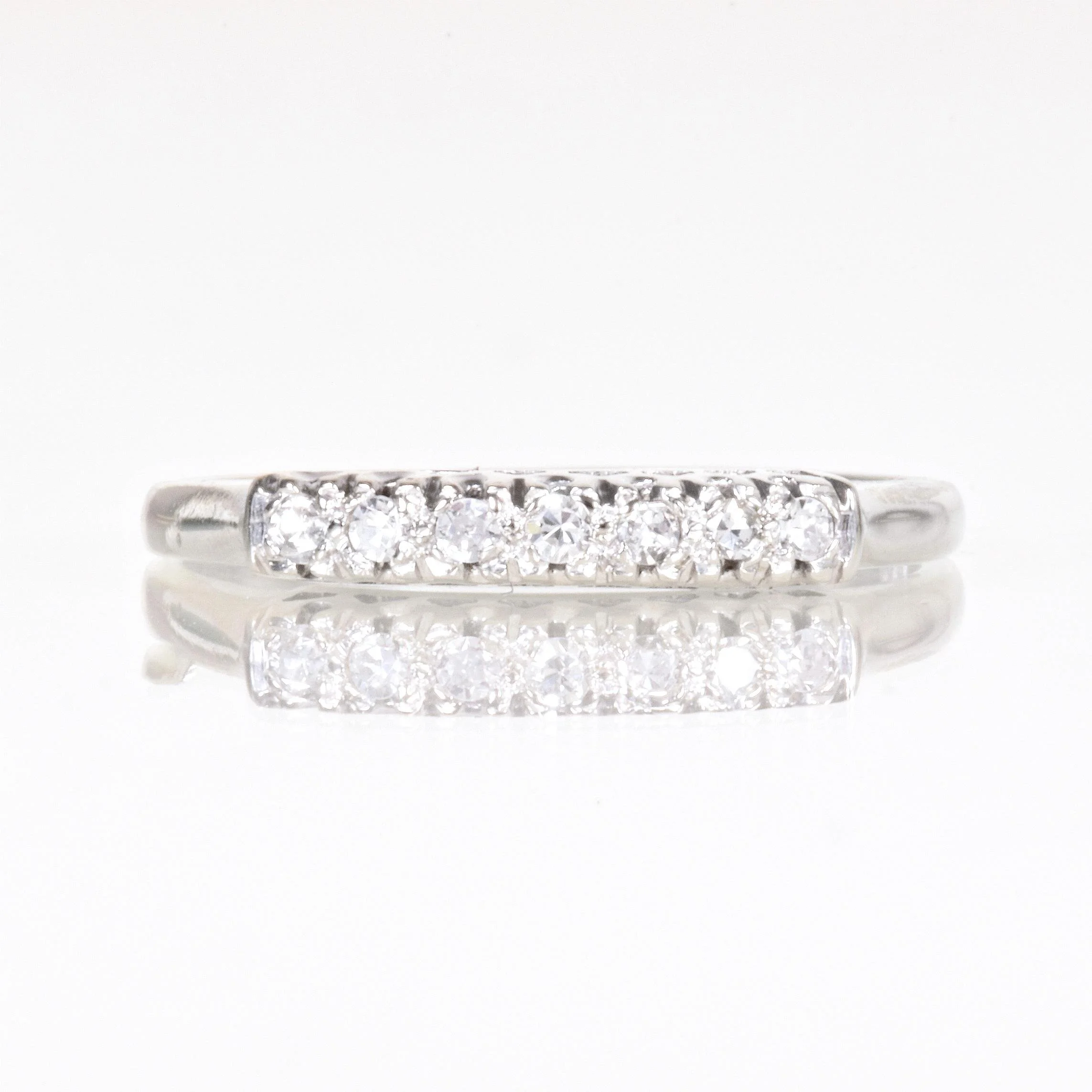Antique Wedding Band - Antique 18k White Gold Diamond Wedding Band 18k White Gold 7 Single Cut Diamonds =.08ct VS/G-H Ring Size 6.5 (sizable) Band measures approximately 2.7mm wide at center, back of band is 1.3mm wide.