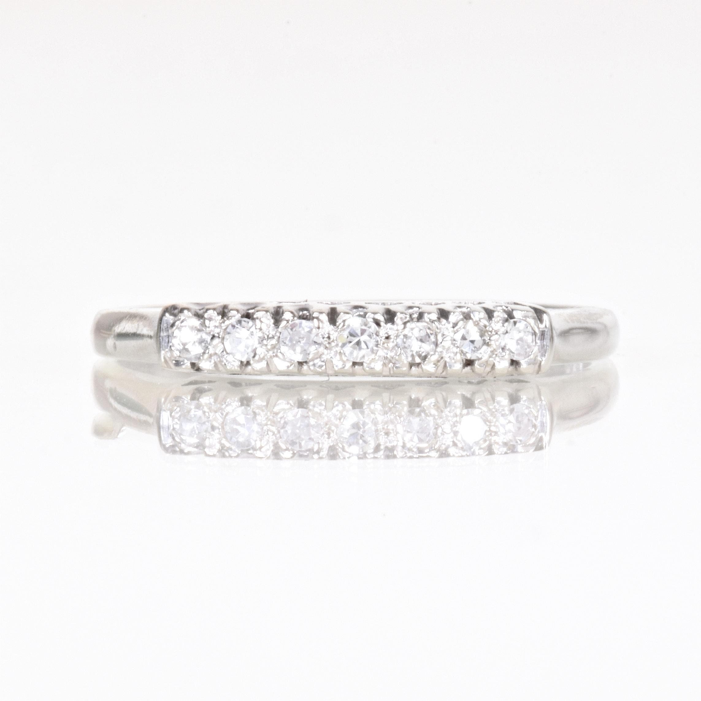 Antique Wedding Band - Antique 18k White Gold Diamond Wedding Band 18k White Gold 7 Single Cut Diamonds =.08ct VS/G-H Ring Size 6.5 (sizable) Band measures approximately 2.7mm wide at center, back of band is 1.3mm wide.