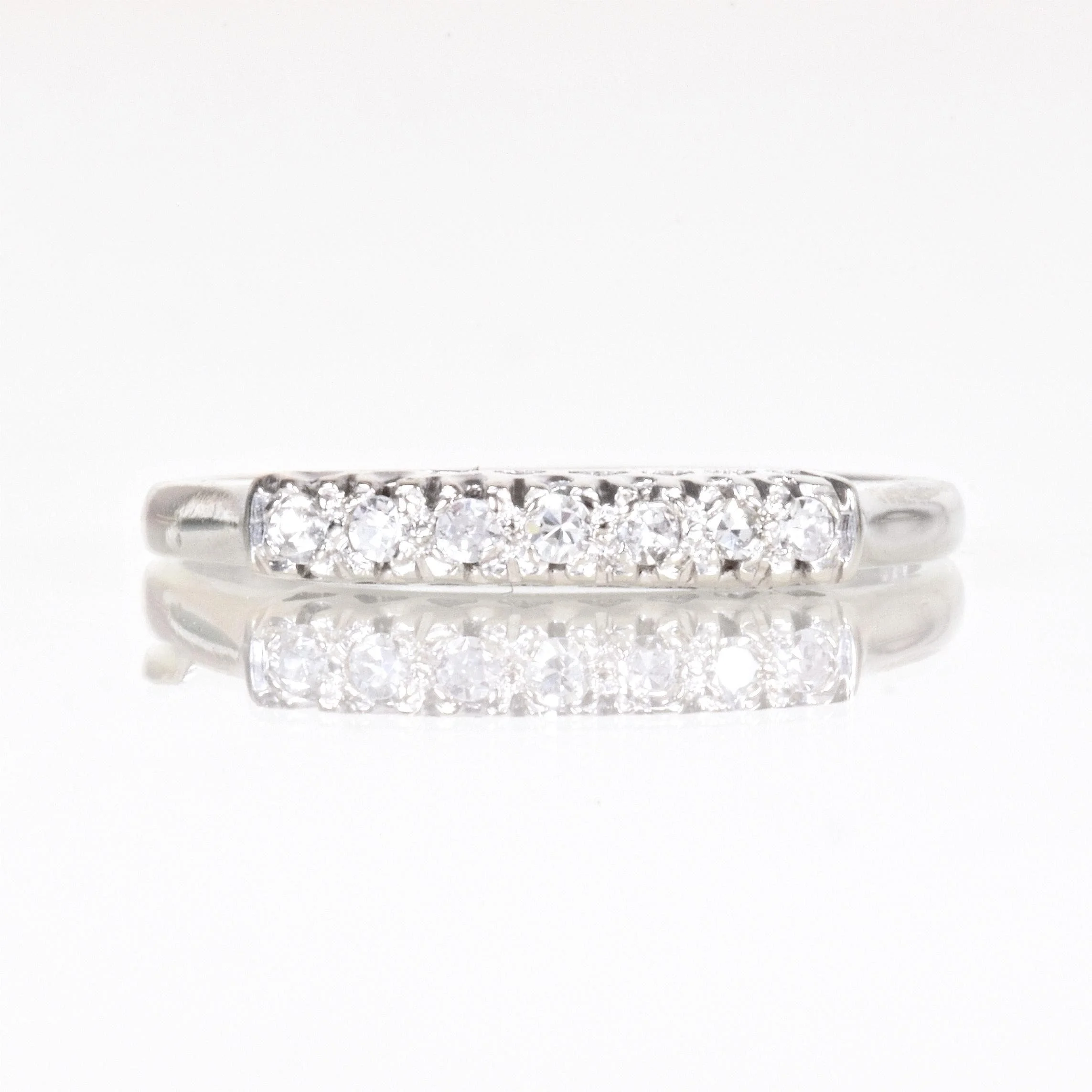 Antique Wedding Band - Antique 18k White Gold Diamond Wedding Band 18k White Gold 7 Single Cut Diamonds =.08ct VS/G-H Ring Size 6.5 (sizable) Band measures approximately 2.7mm wide at center, back of band is 1.3mm wide.