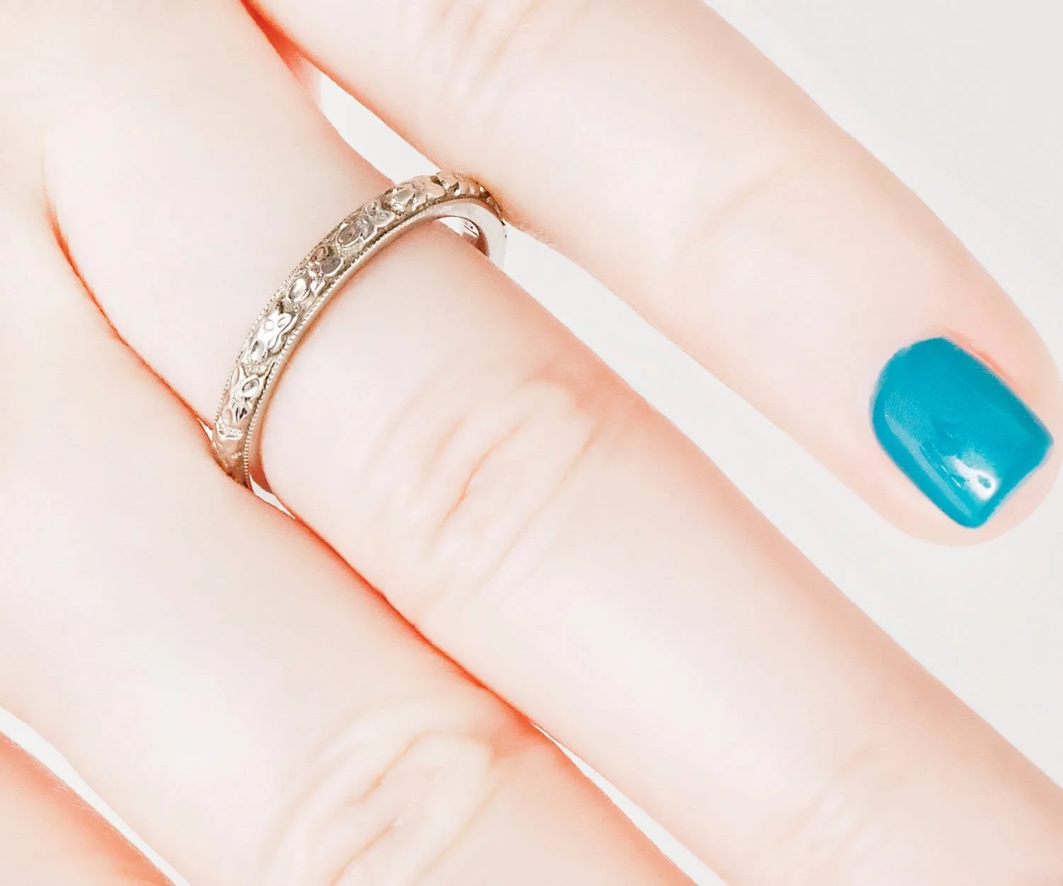 Antique Wedding Band - Antique 18k White Gold Engraved "1925" Wedding Band