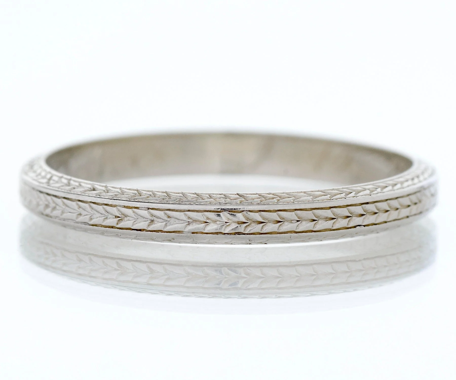 Antique Wedding Band - Antique 18k White Gold Engraved "1927" Wedding Band