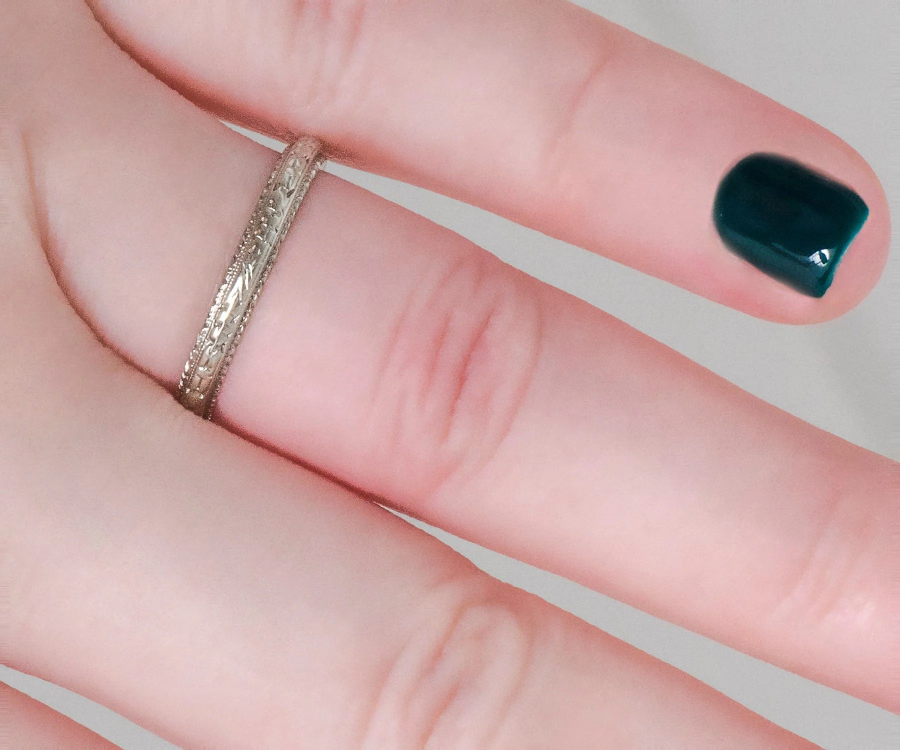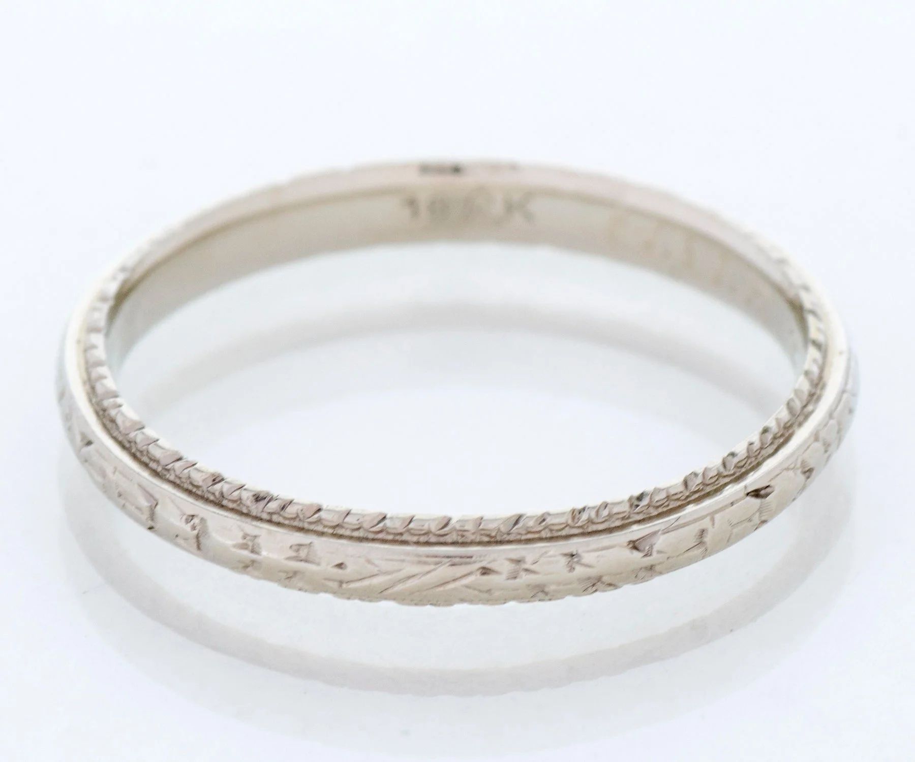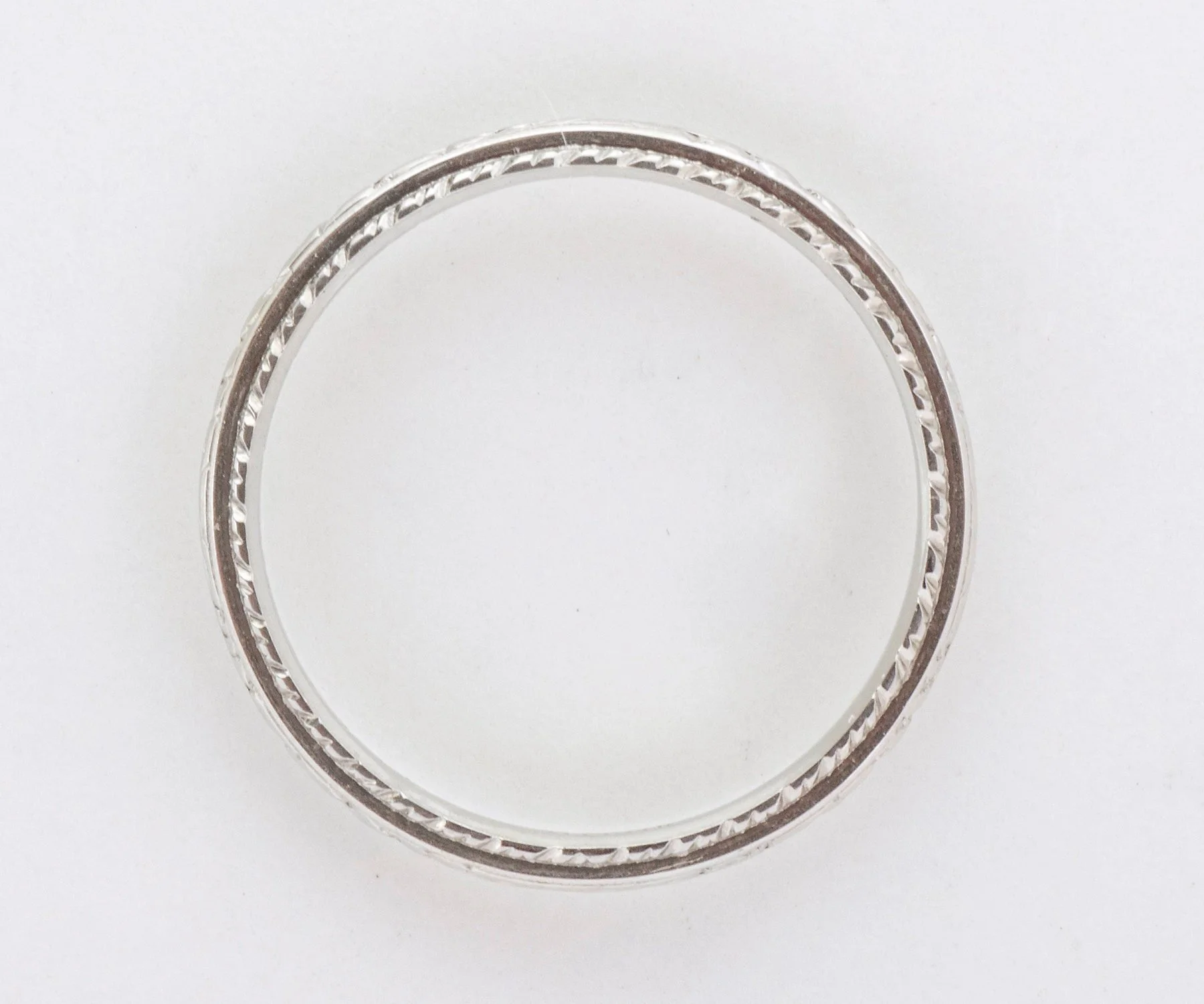 Antique Wedding Band - Antique 18k White Gold Engraved "1930" Wedding Band