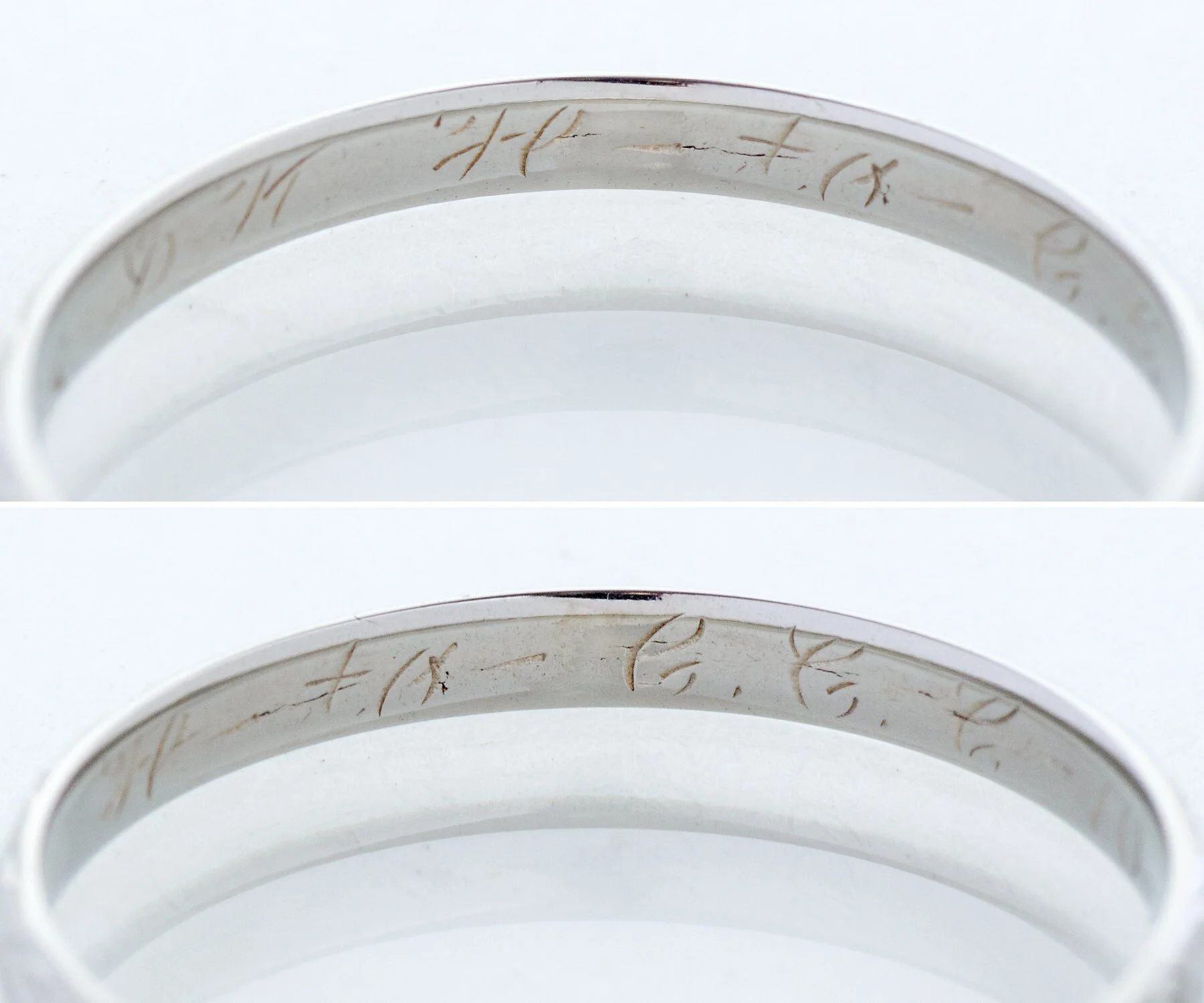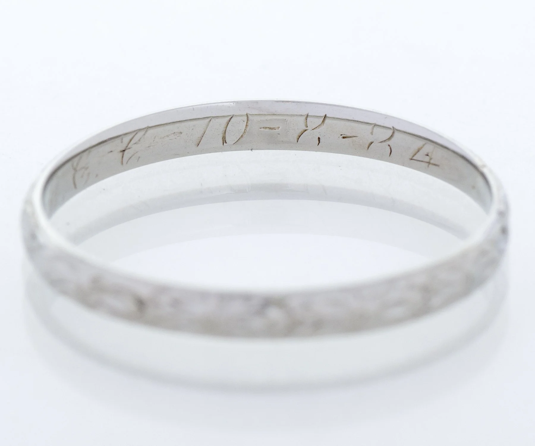 Antique Wedding Band - Antique 18k White Gold Engraved "1934" Wedding Band 18k White Gold Engraved "10-8-34" Ring Size 6 1/8 Band measures approximately 2mm wide.