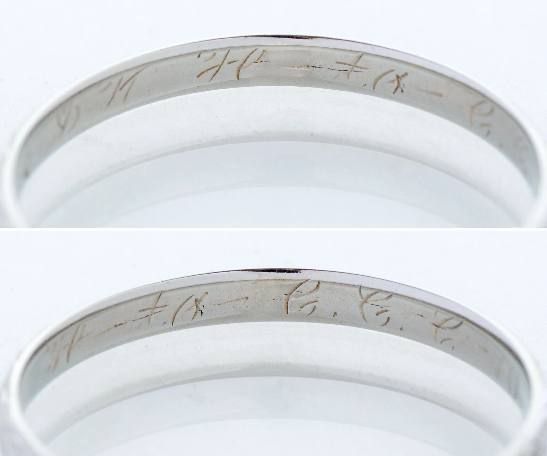 Antique Wedding Band - Antique 18k White Gold Engraved "1934" Wedding Band 18k White Gold Engraved "10-8-34" Ring Size 6 1/8 Band measures approximately 2mm wide.