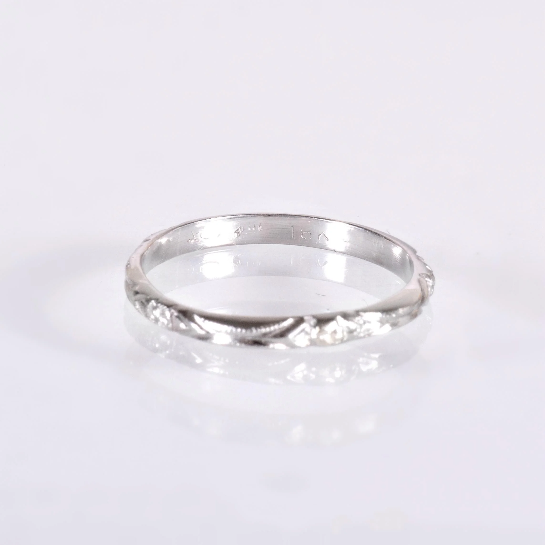 Antique Wedding Band - Antique 18k White Gold Engraved Wedding Band
