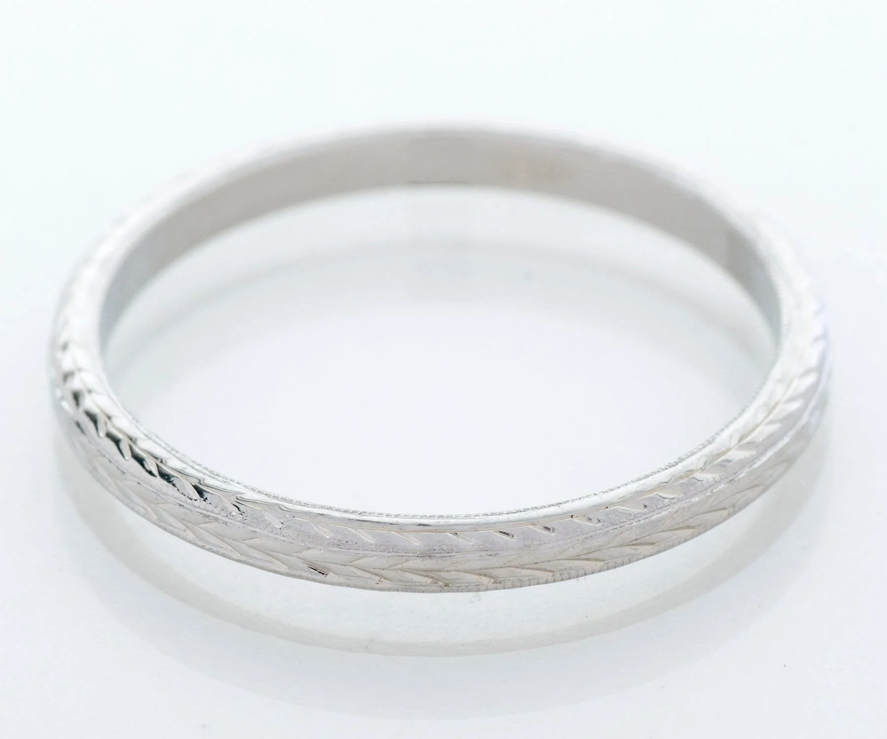Antique Wedding Band - Antique 18k White Gold Engraved Wedding Band