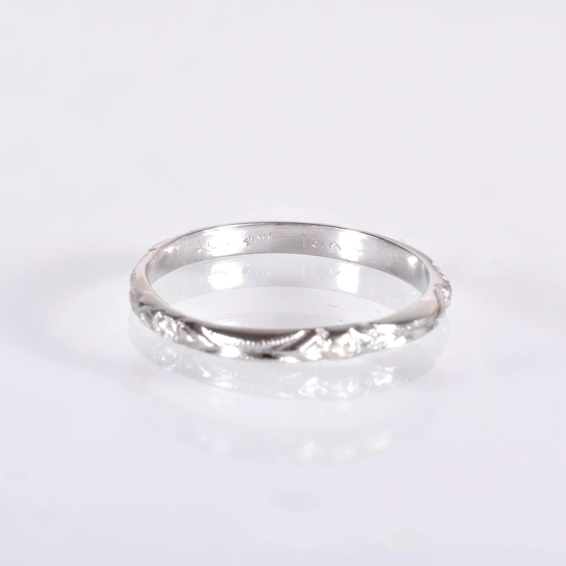 Antique Wedding Band - Antique 1920's 18k White Gold Engraved Wedding Band