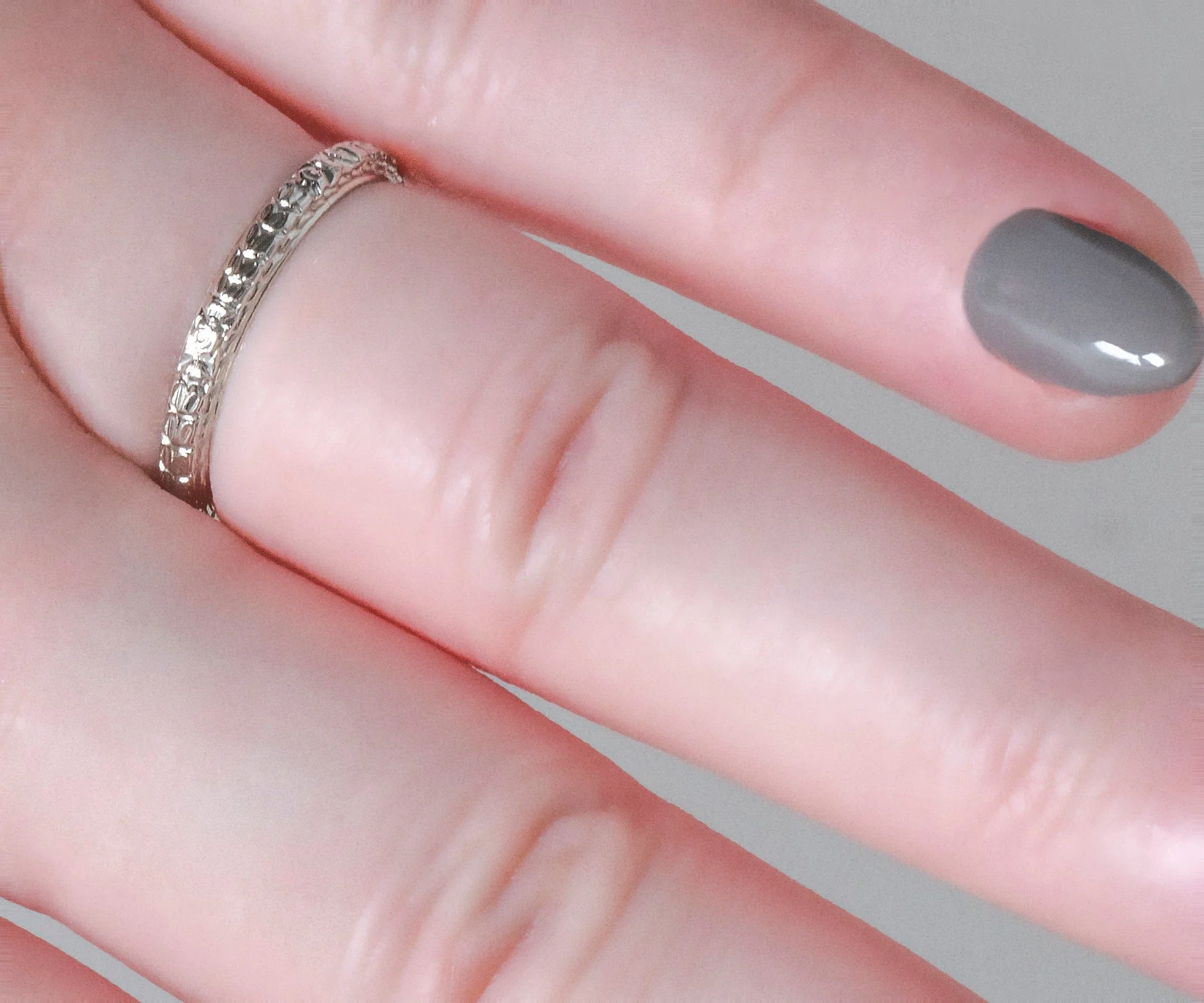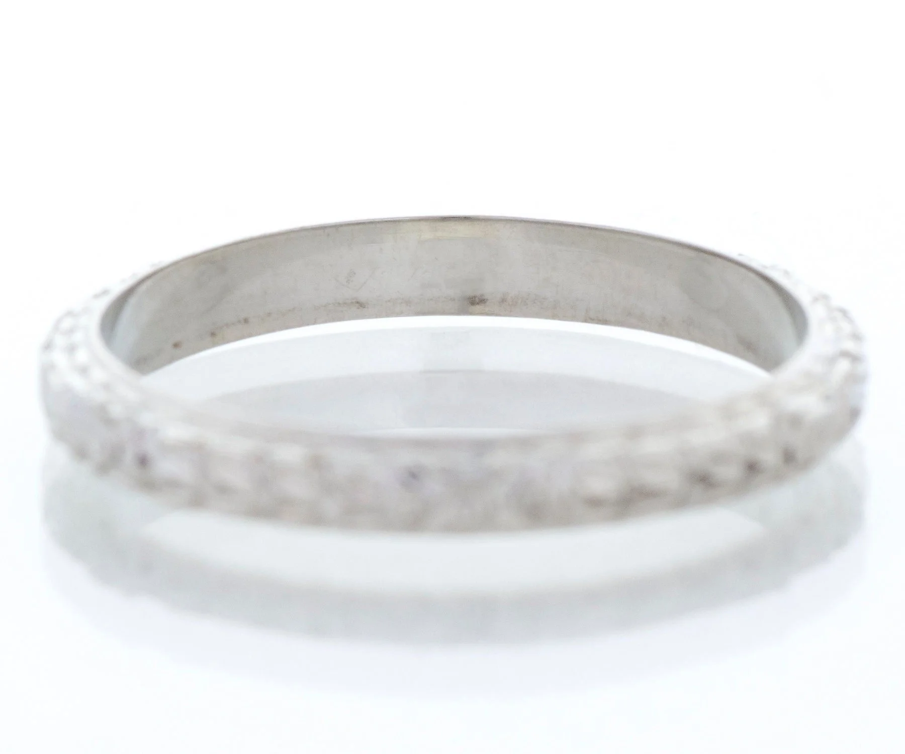 Antique Wedding Band - Antique 18k White Gold Engraved Wedding Band