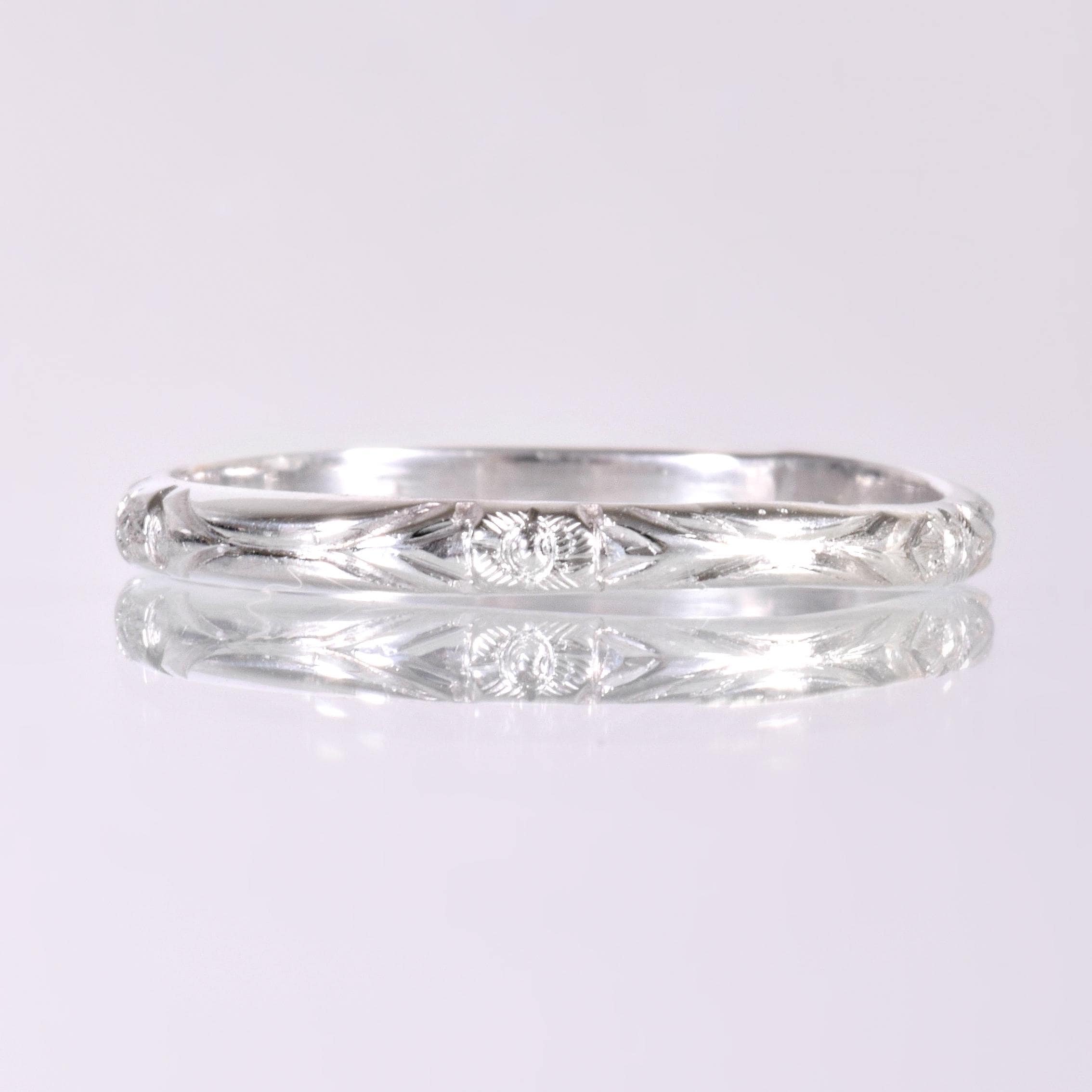 Antique Wedding Band - Antique 18k White Gold Engraved Wedding Band