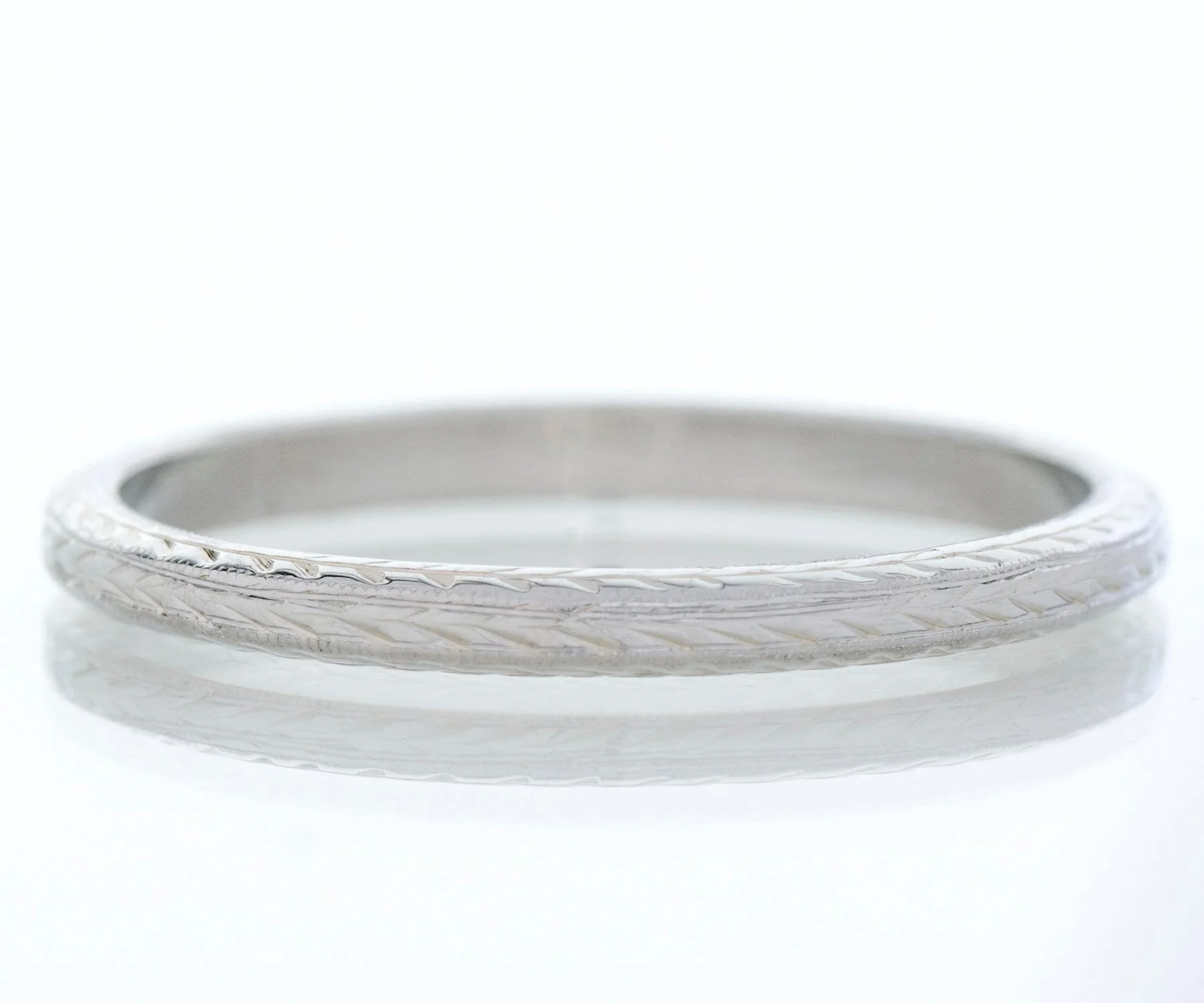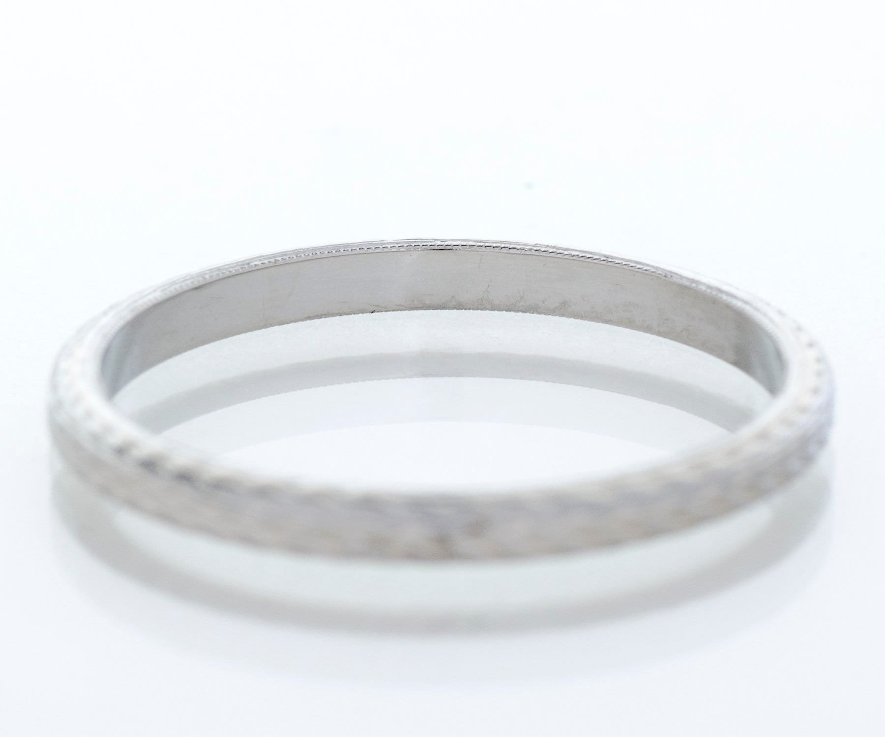 Antique Wedding Band - Antique 18k White Gold Engraved Wedding Band