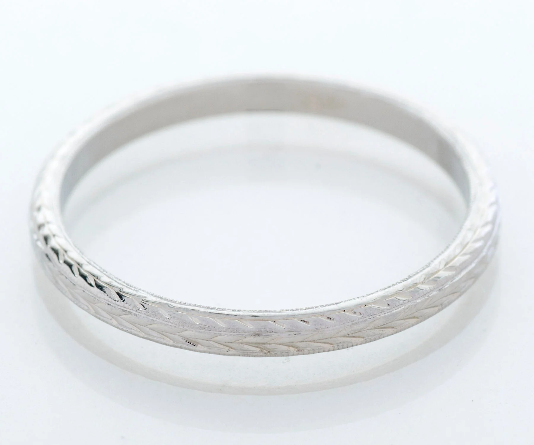 Antique Wedding Band - Antique 18k White Gold Engraved Wedding Band