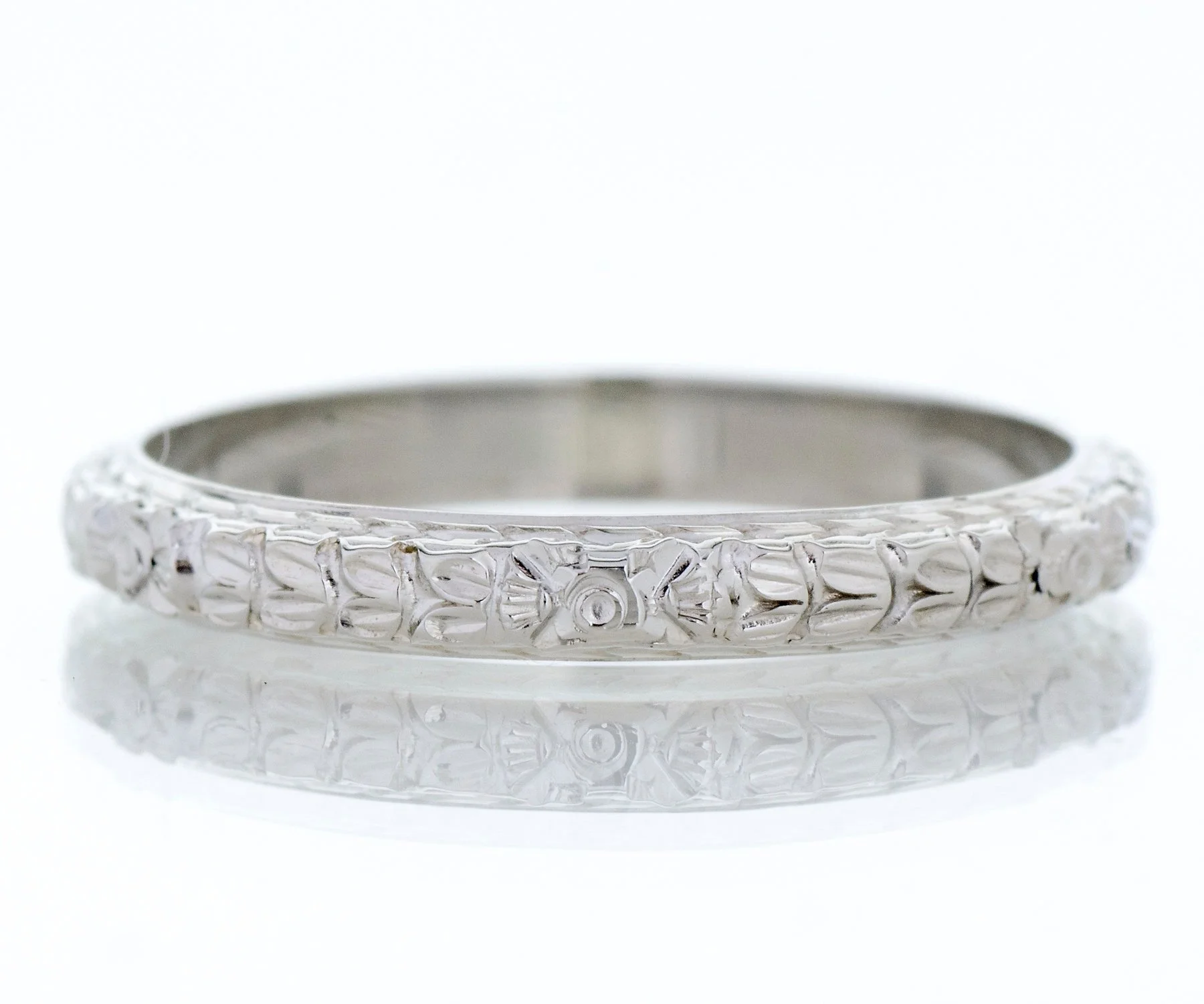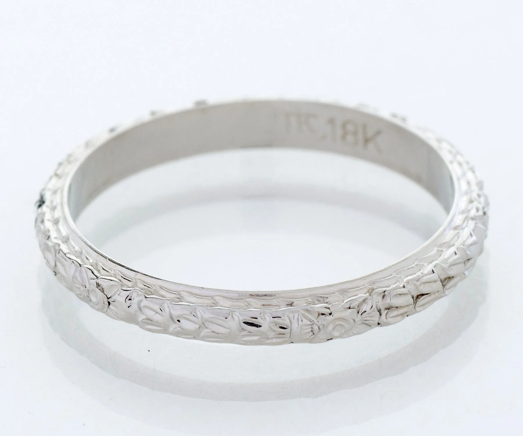 Antique Wedding Band - Antique 18k White Gold Engraved Wedding Band