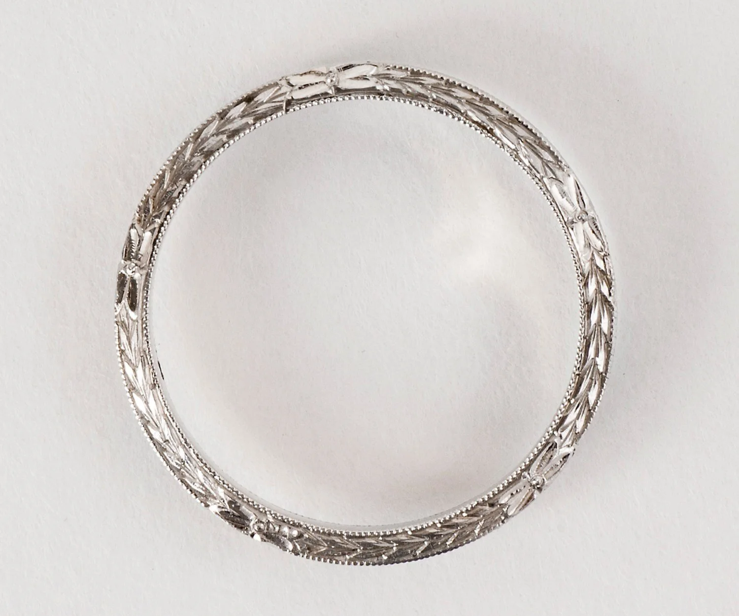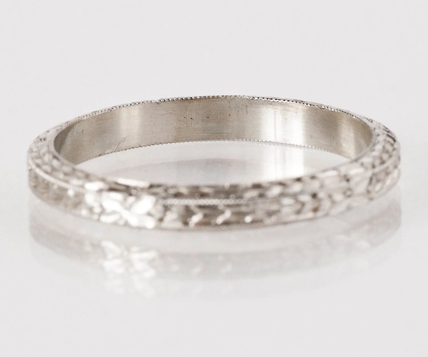 Antique Wedding Band - Antique 18k White Gold Etched Wedding Band