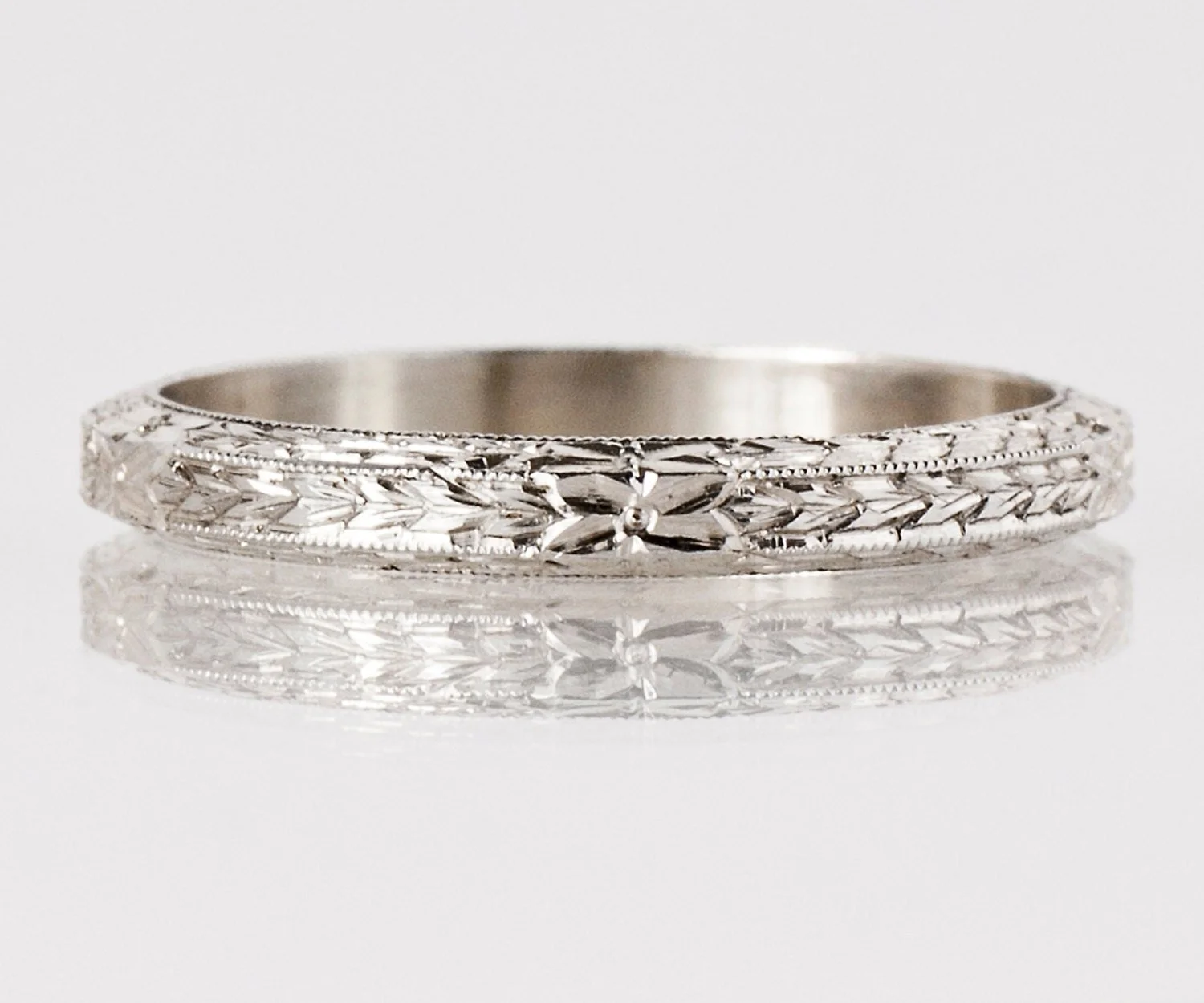 Antique Wedding Band - Antique 18k White Gold Etched Wedding Band