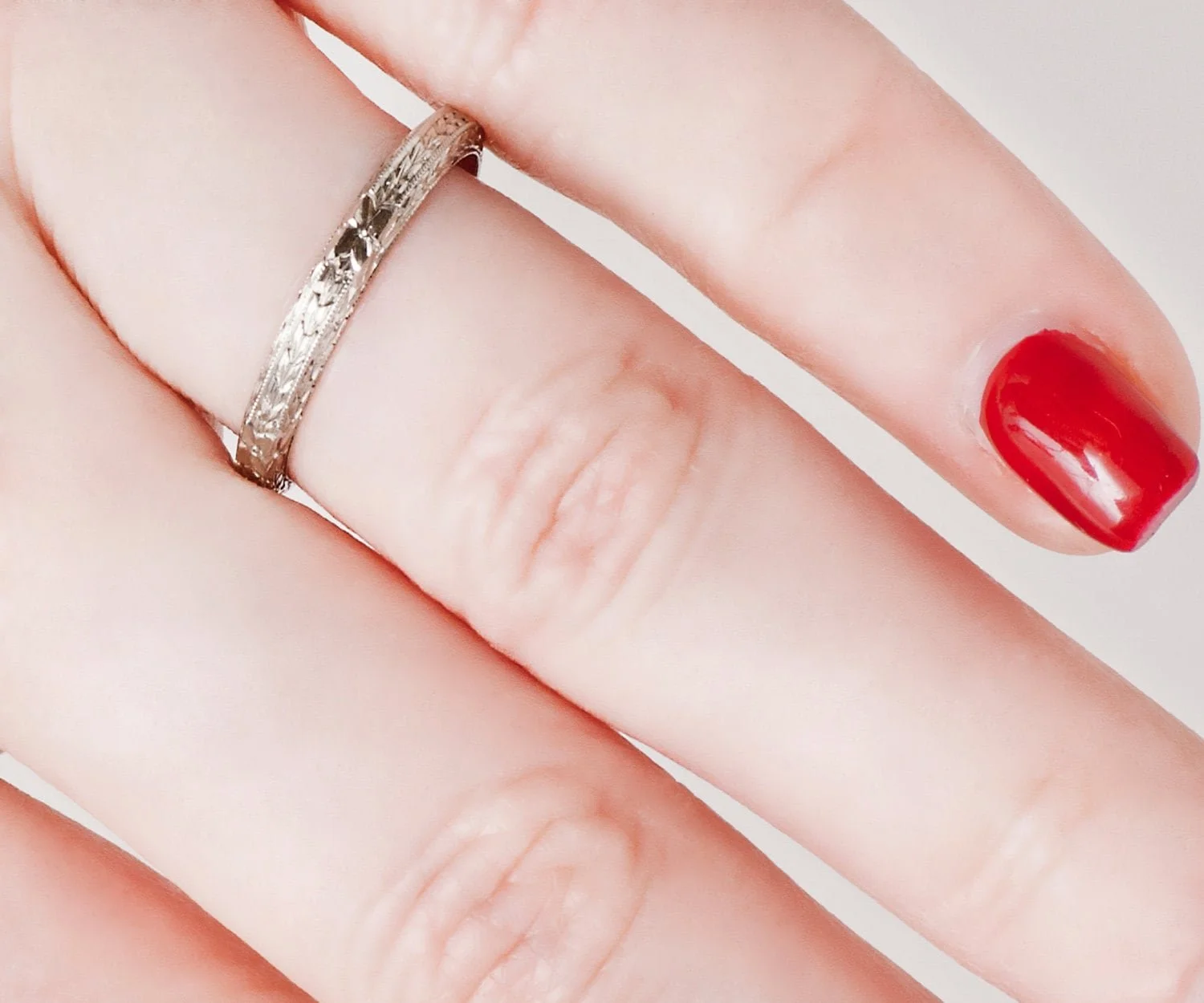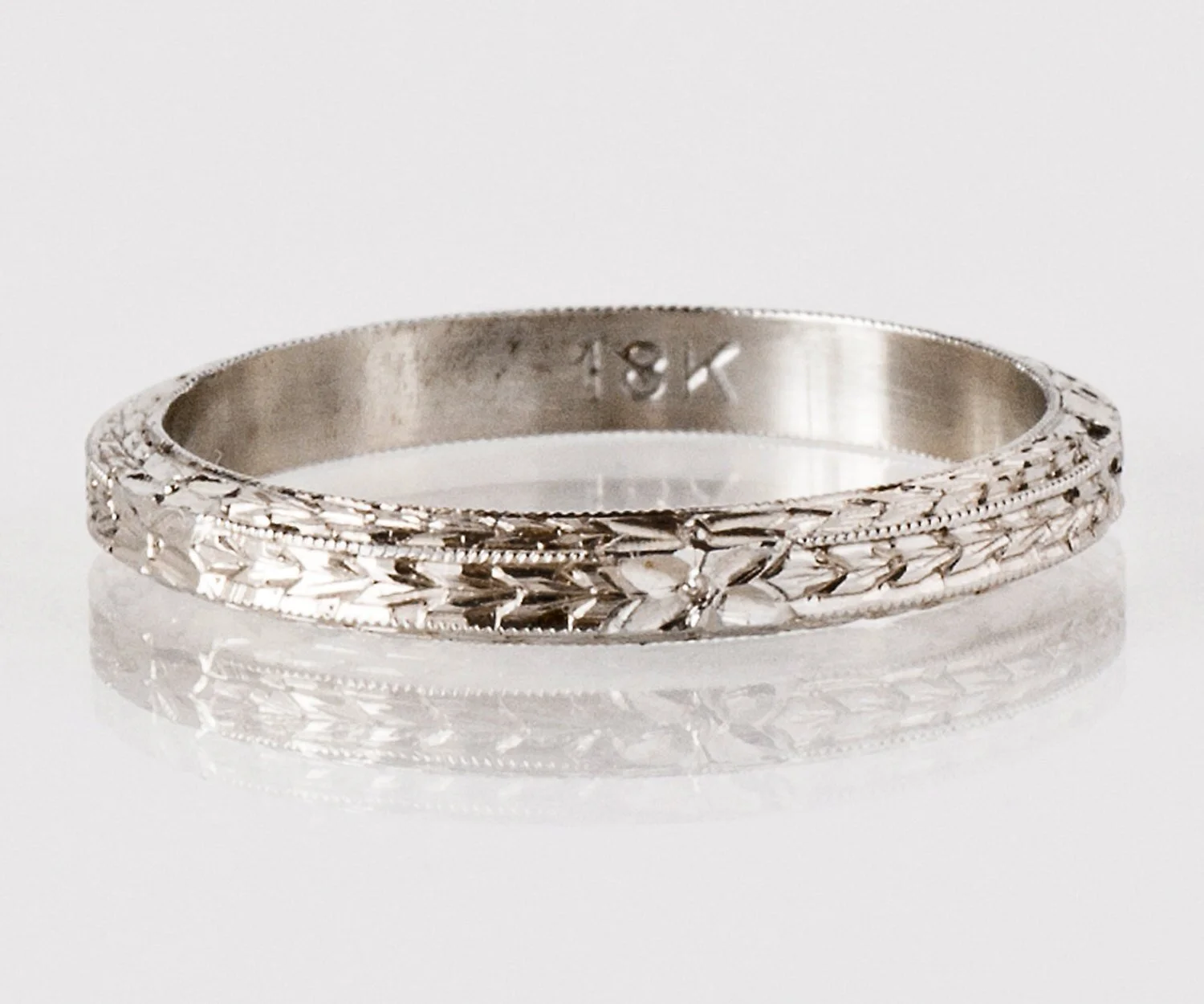 Antique Wedding Band - Antique 18k White Gold Etched Wedding Band
