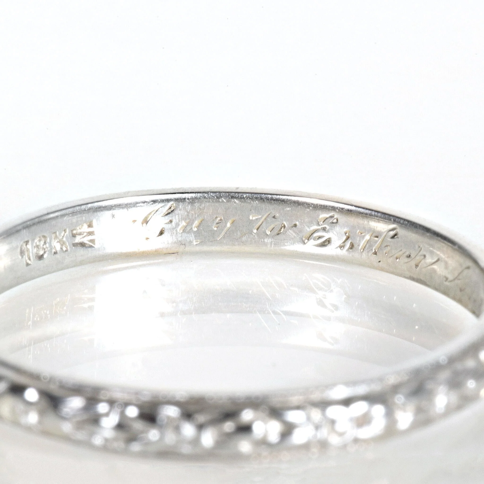 Antique Wedding Band - Antique 18k White Gold JR Woods Engraved "1923" Wedding Band