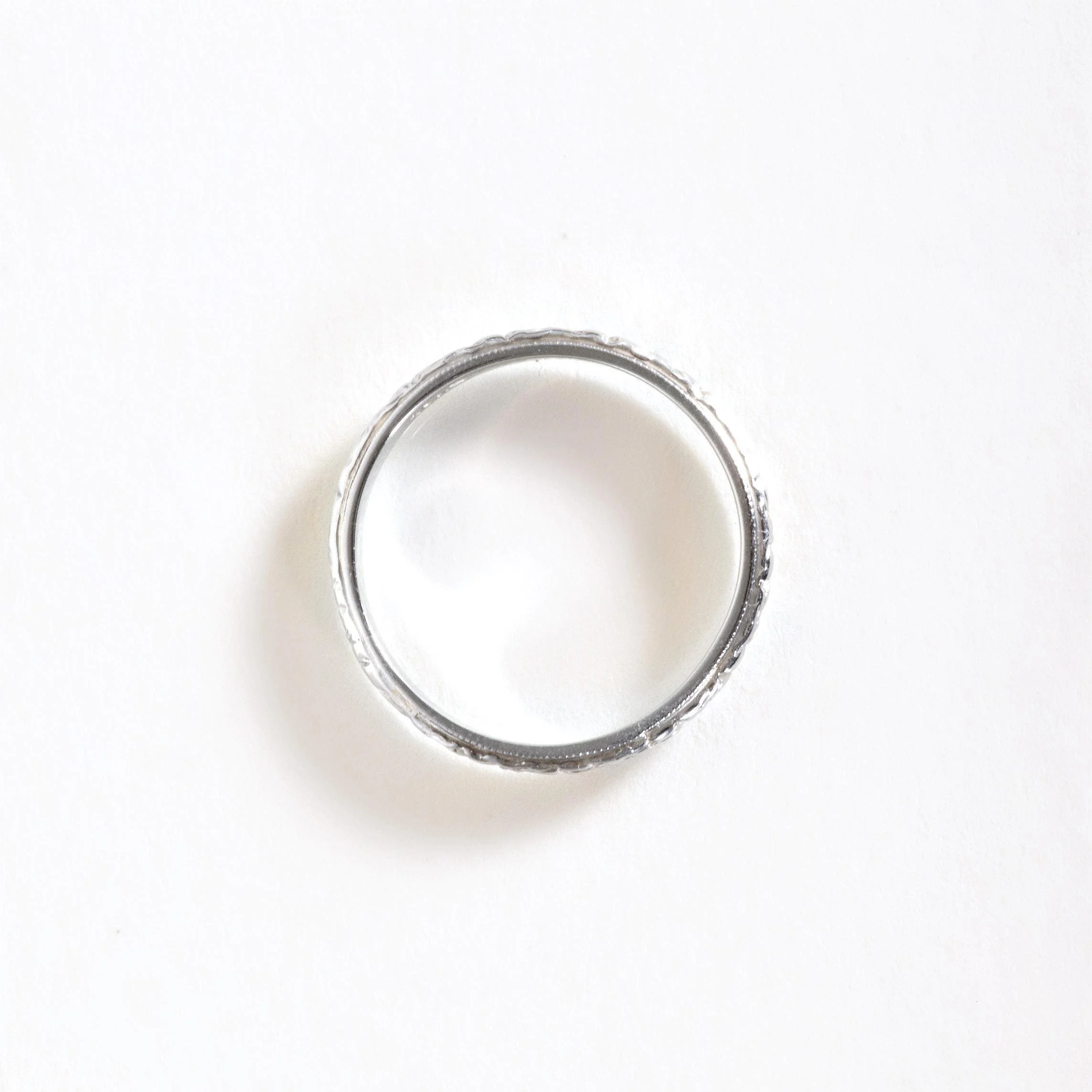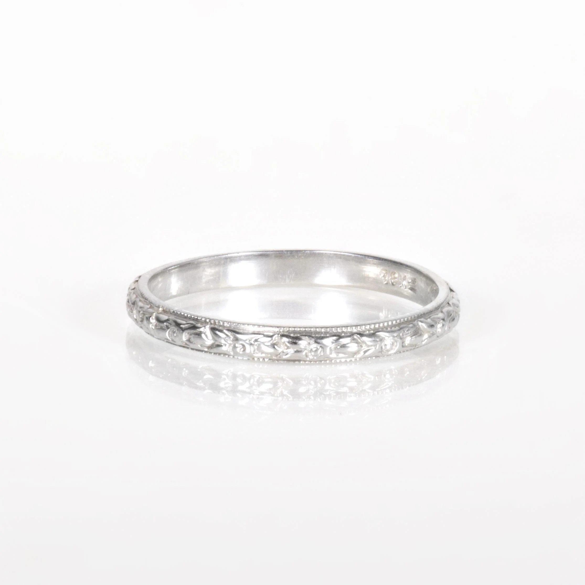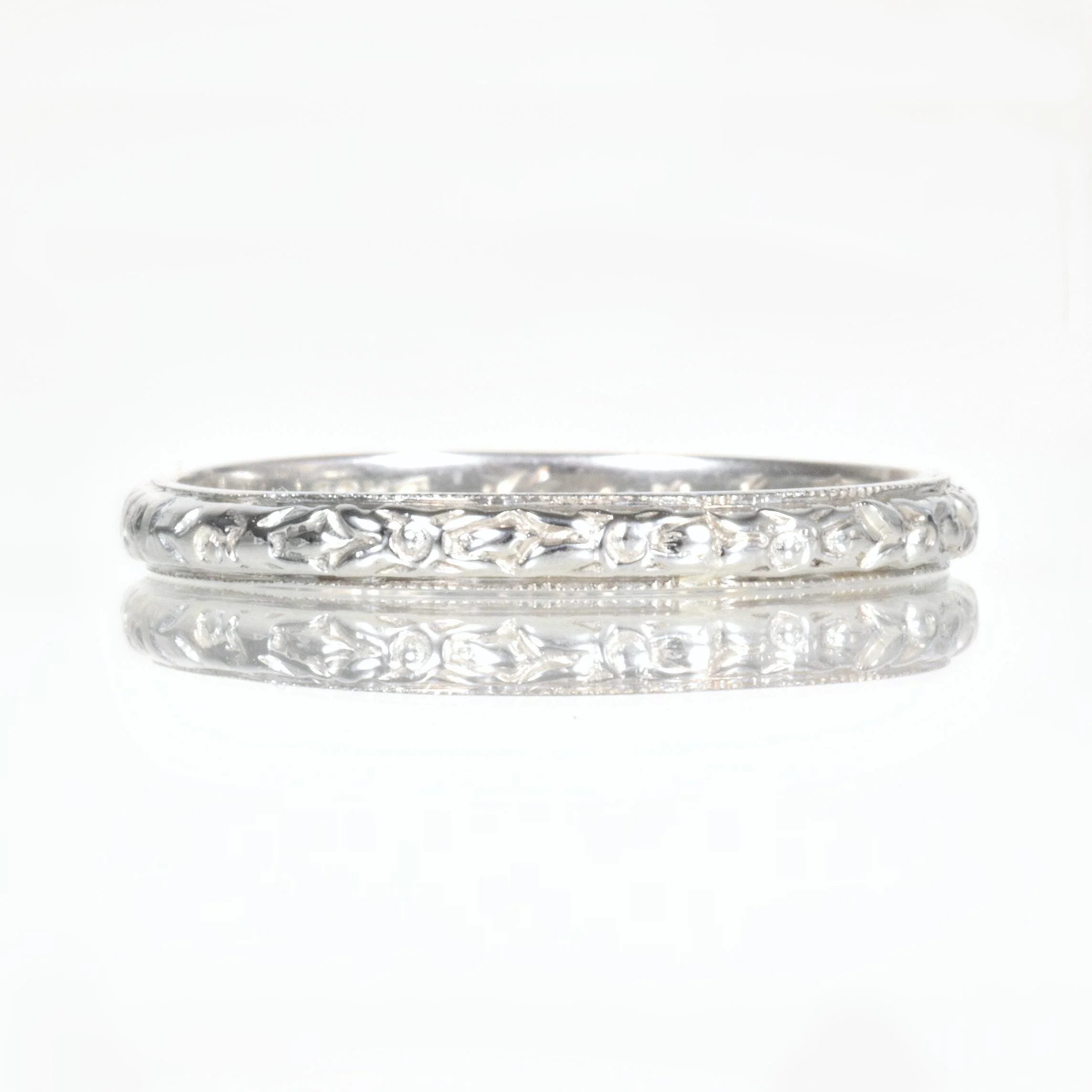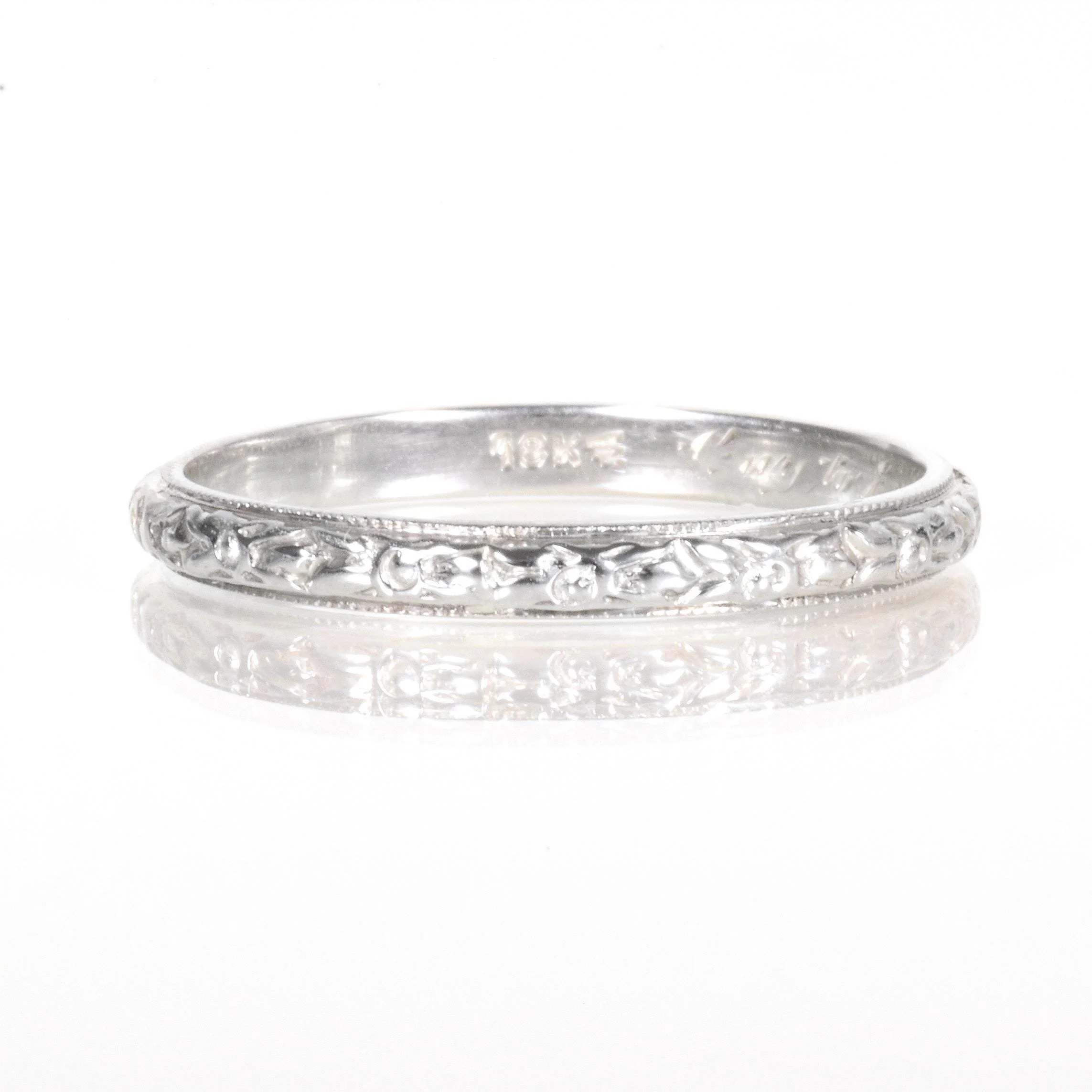 Antique Wedding Band - Antique 18k White Gold JR Woods Engraved "1923" Wedding Band