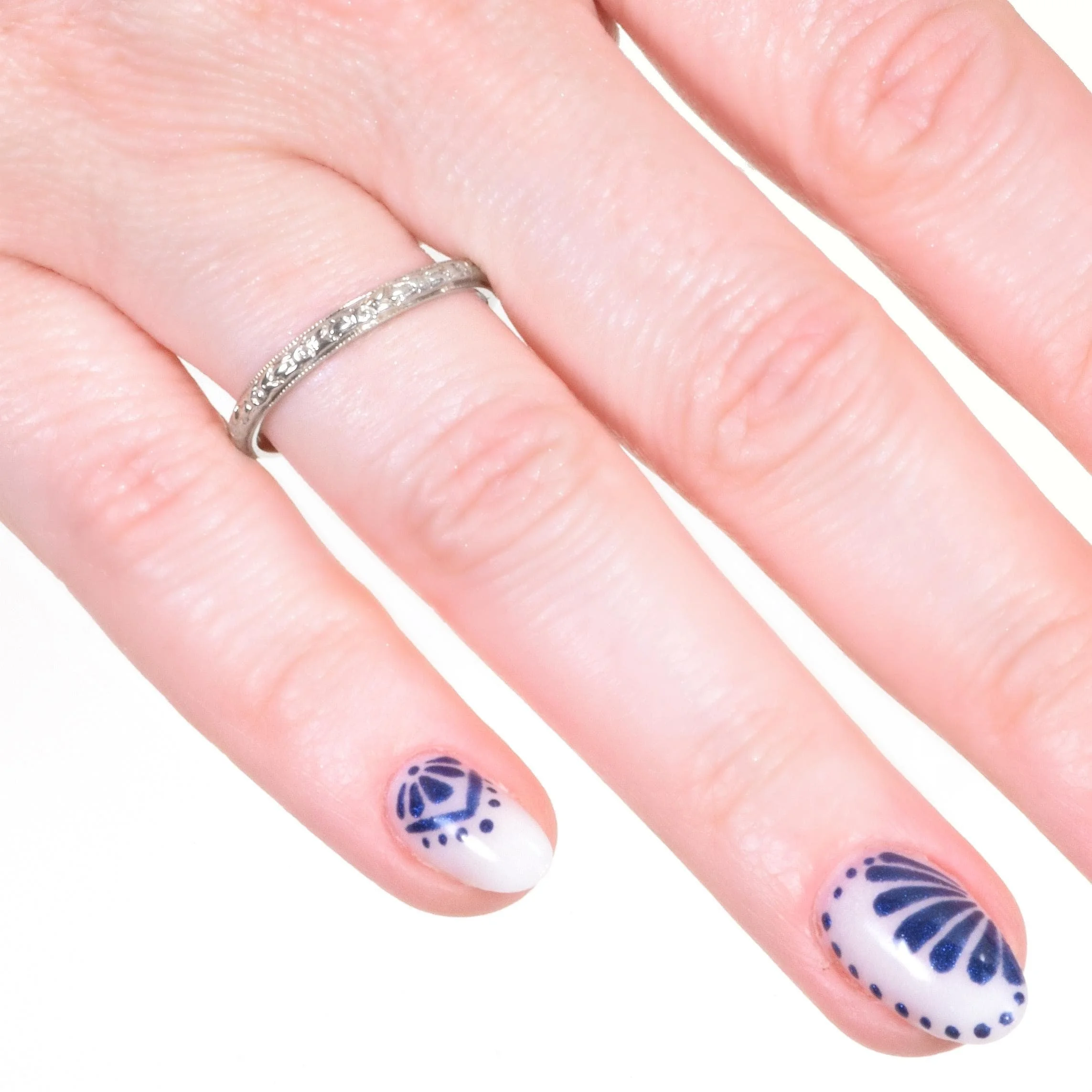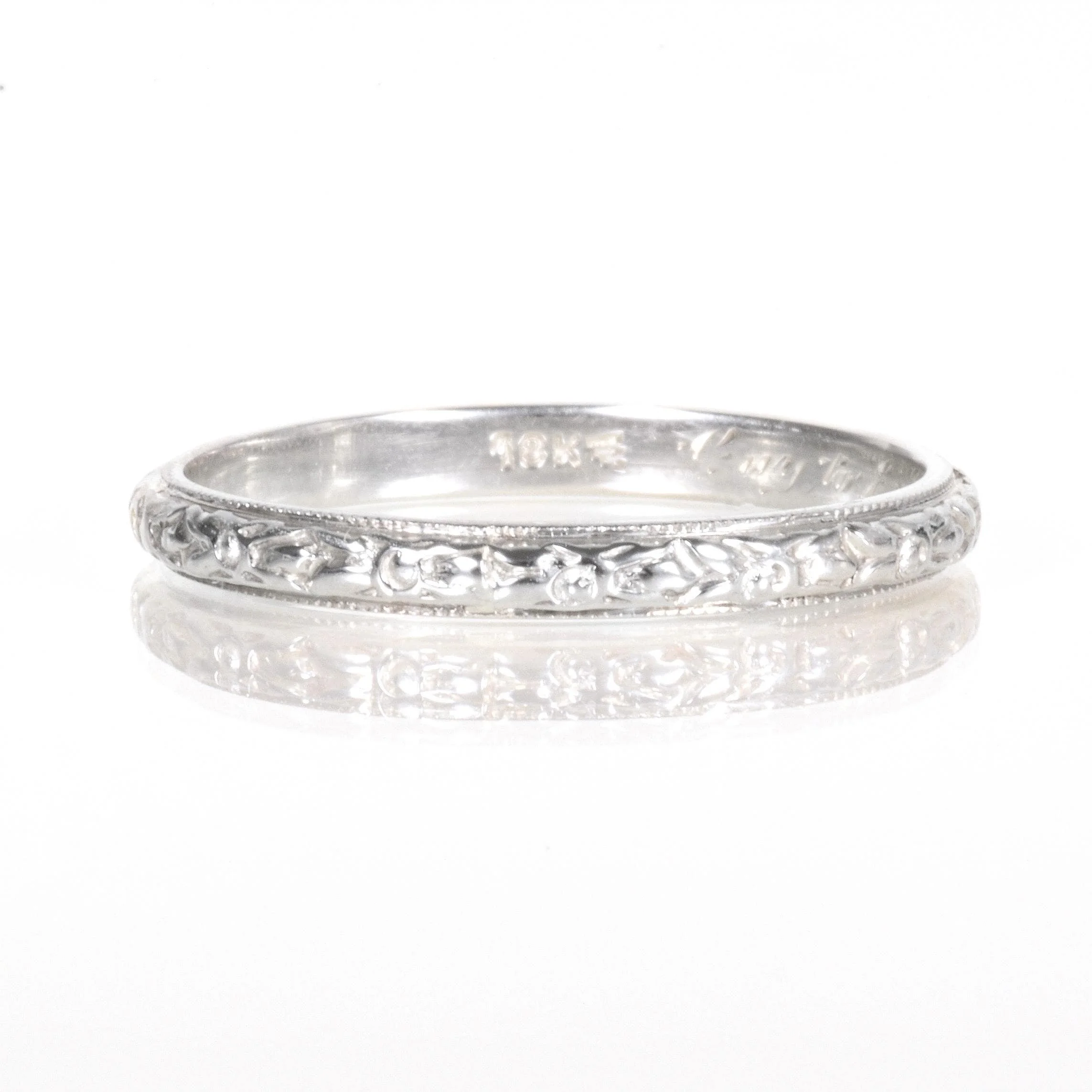 Antique Wedding Band - Antique 18k White Gold JR Woods Engraved "1923" Wedding Band