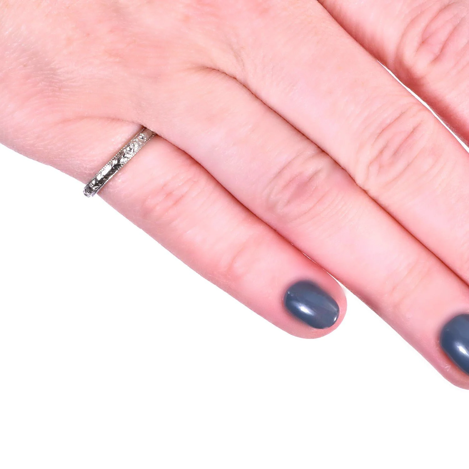This Werner antique band is all about nature. Created in 18k white gold, the very crisp engraving shows floral and leaf design. A lovely band to pair up with your engagement ring of any era or choose it for your eclectic stacking combination!