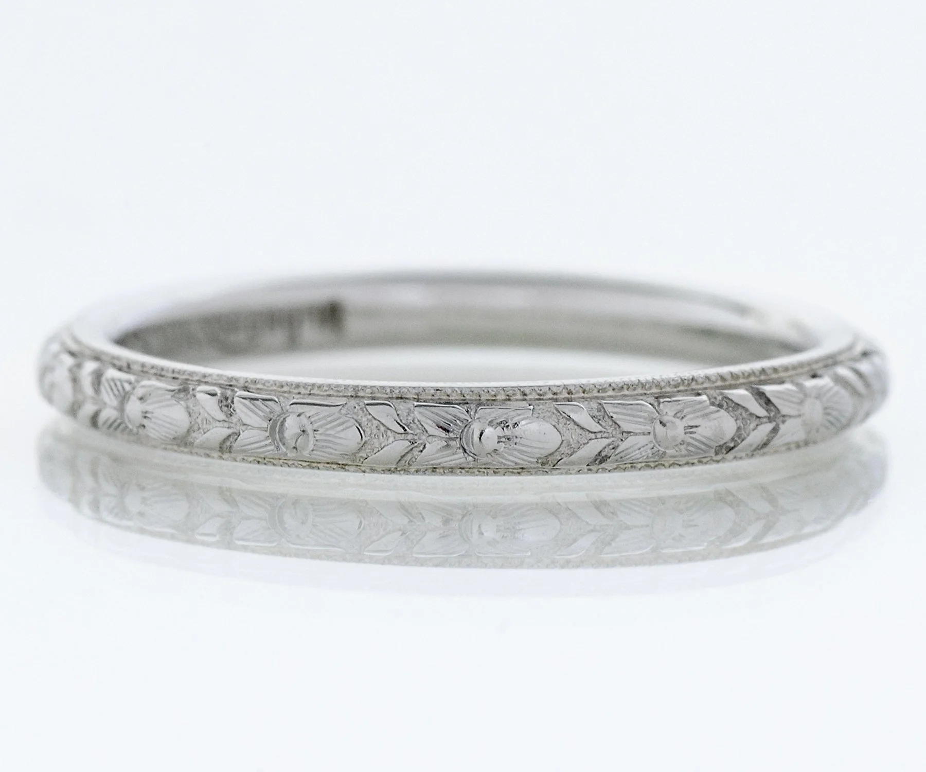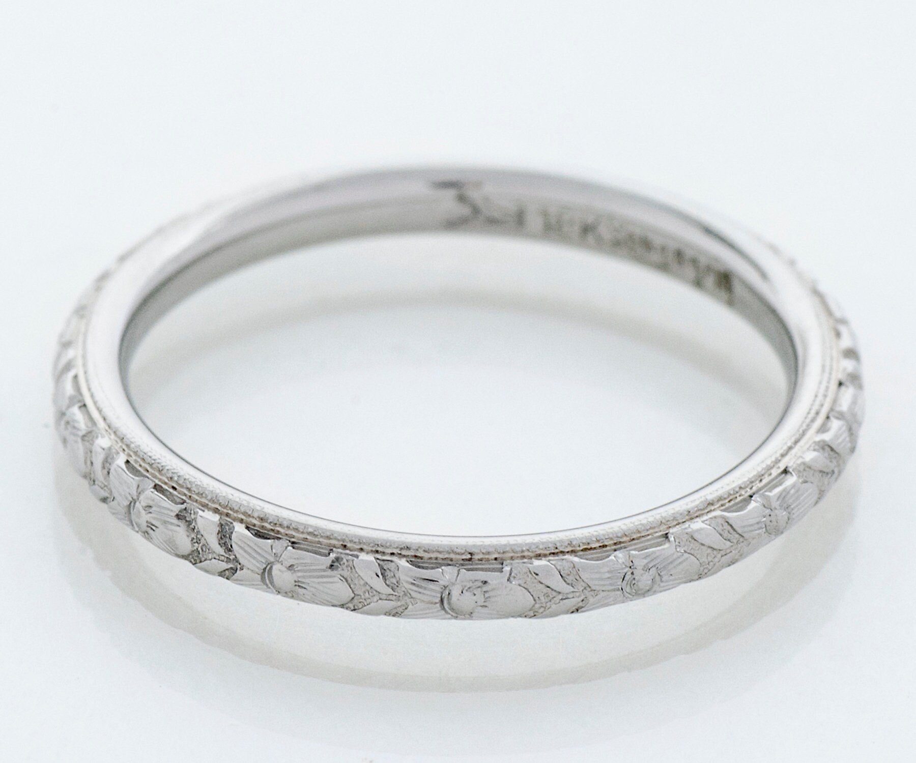 Antique Wedding Band - Antique 18k White Gold Signed "Lohengrin" Engraved Wedding Band