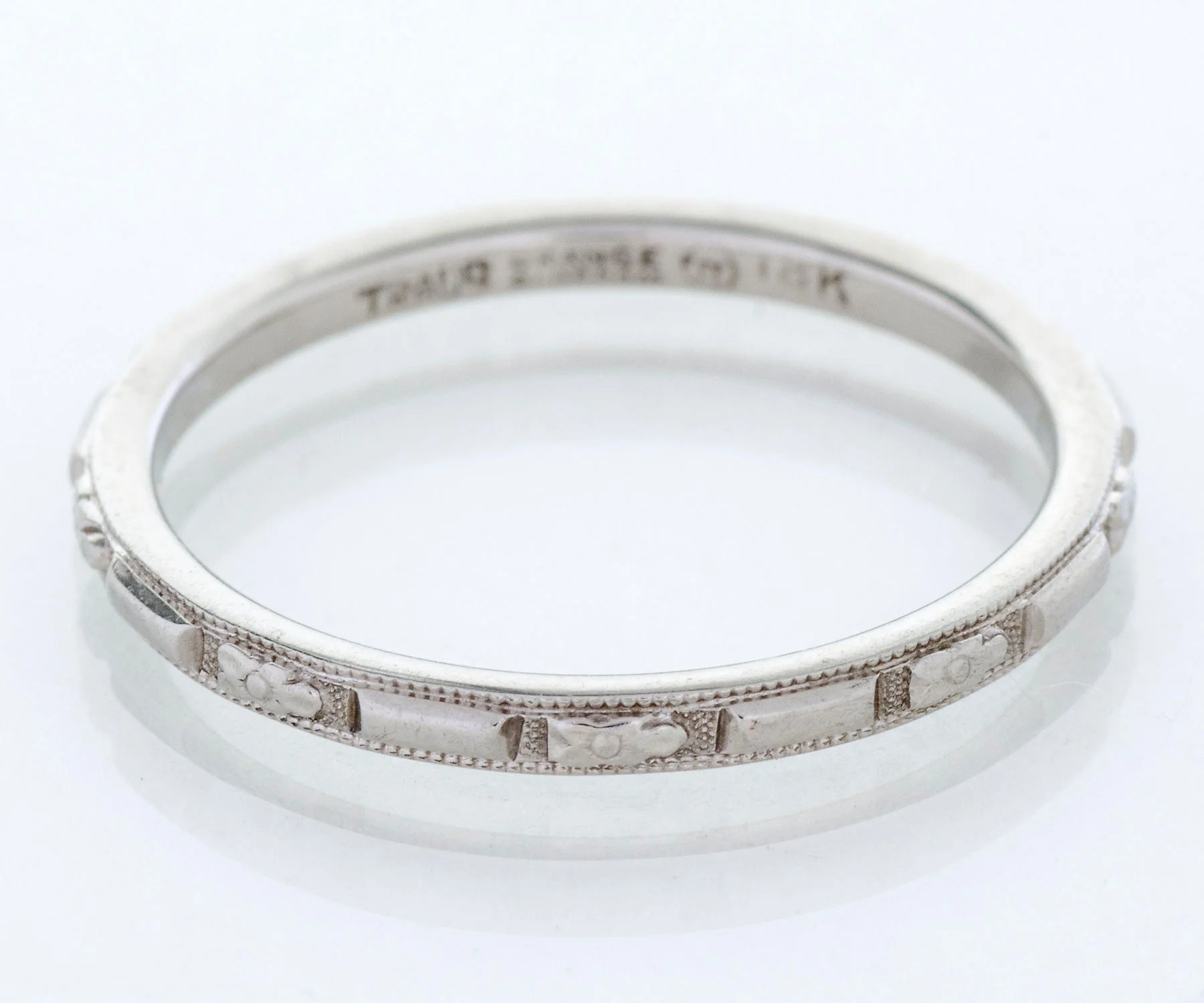Antique Wedding Band - Antique 18k White Gold Traub Orange Blossom Wedding Band