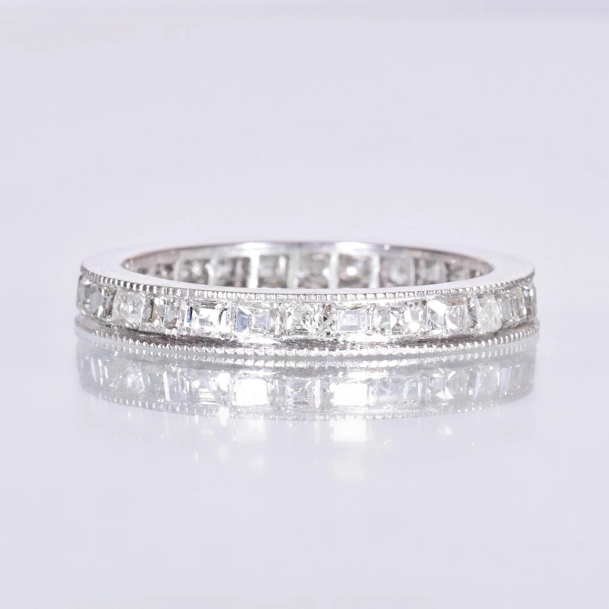 Antique Wedding Band - Antique Art Deco Platinum Step Cut Diamond Eternity Band