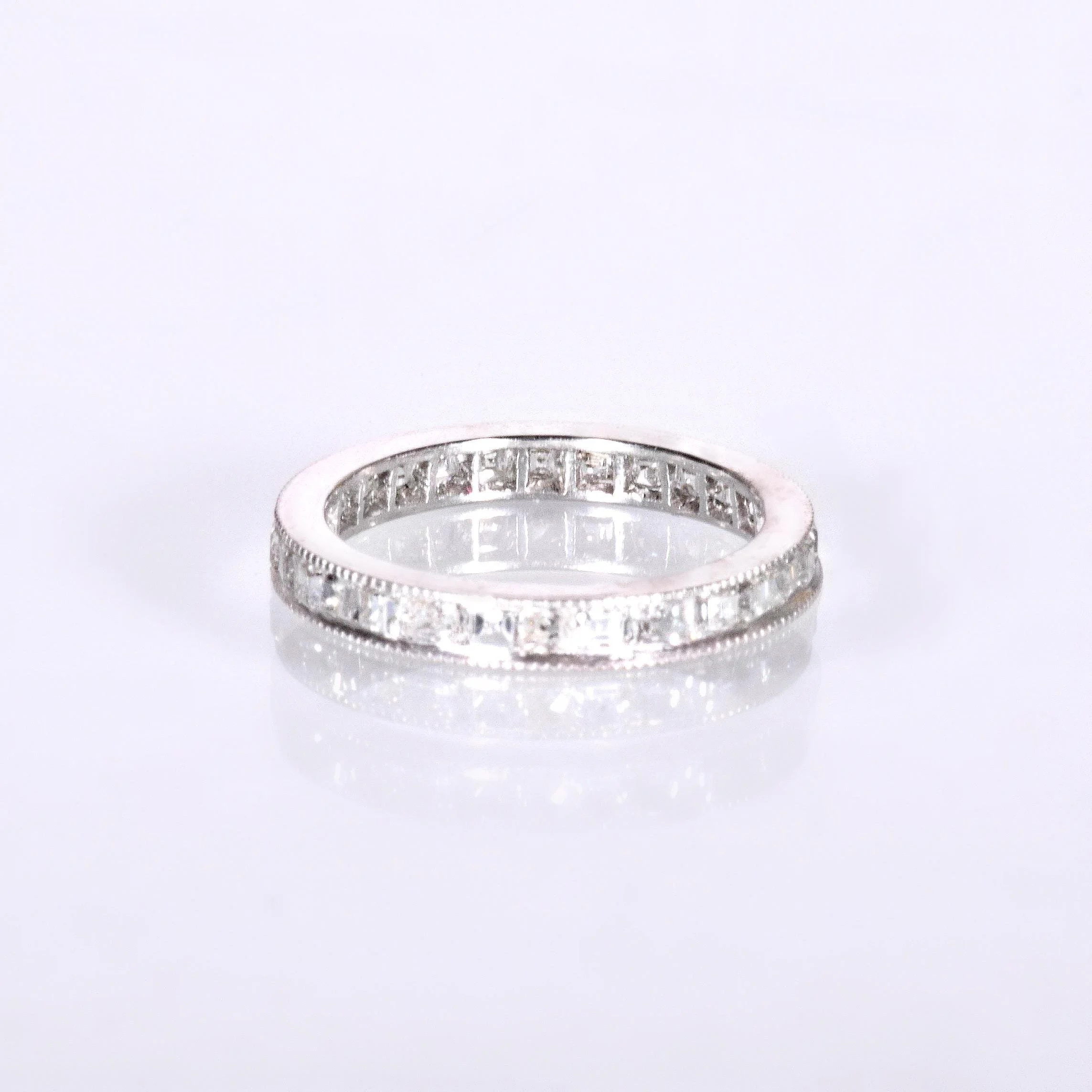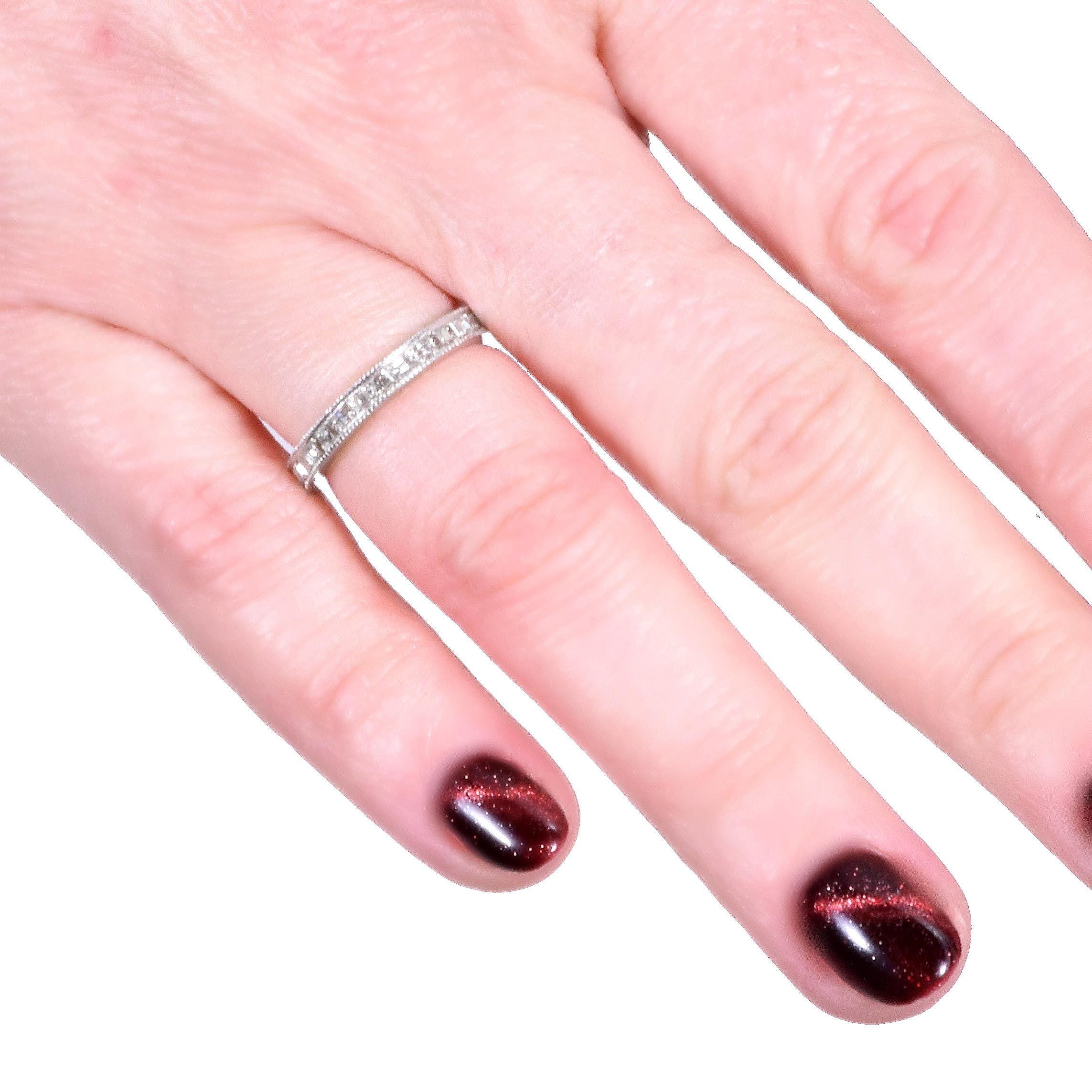 Antique Wedding Band - Antique Art Deco Platinum Step Cut Diamond Eternity Band Art Deco Platinum 28 Step Cut Diamonds =1.55ct VS/G-I Ring Size 4.75 Band measures approximately 2.5mm wide.