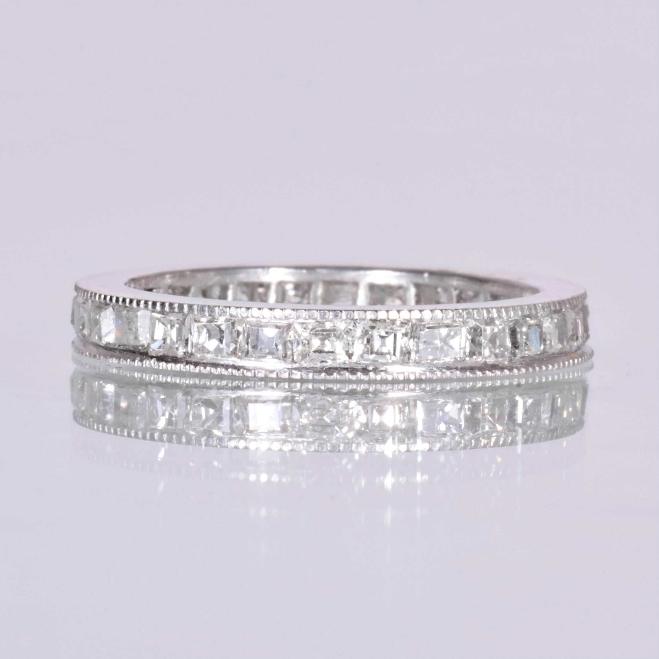 Antique Wedding Band - Antique Art Deco Platinum Step Cut Diamond Eternity Band Art Deco Platinum 28 Step Cut Diamonds =1.55ct VS/G-I Ring Size 4.75 Band measures approximately 2.5mm wide.