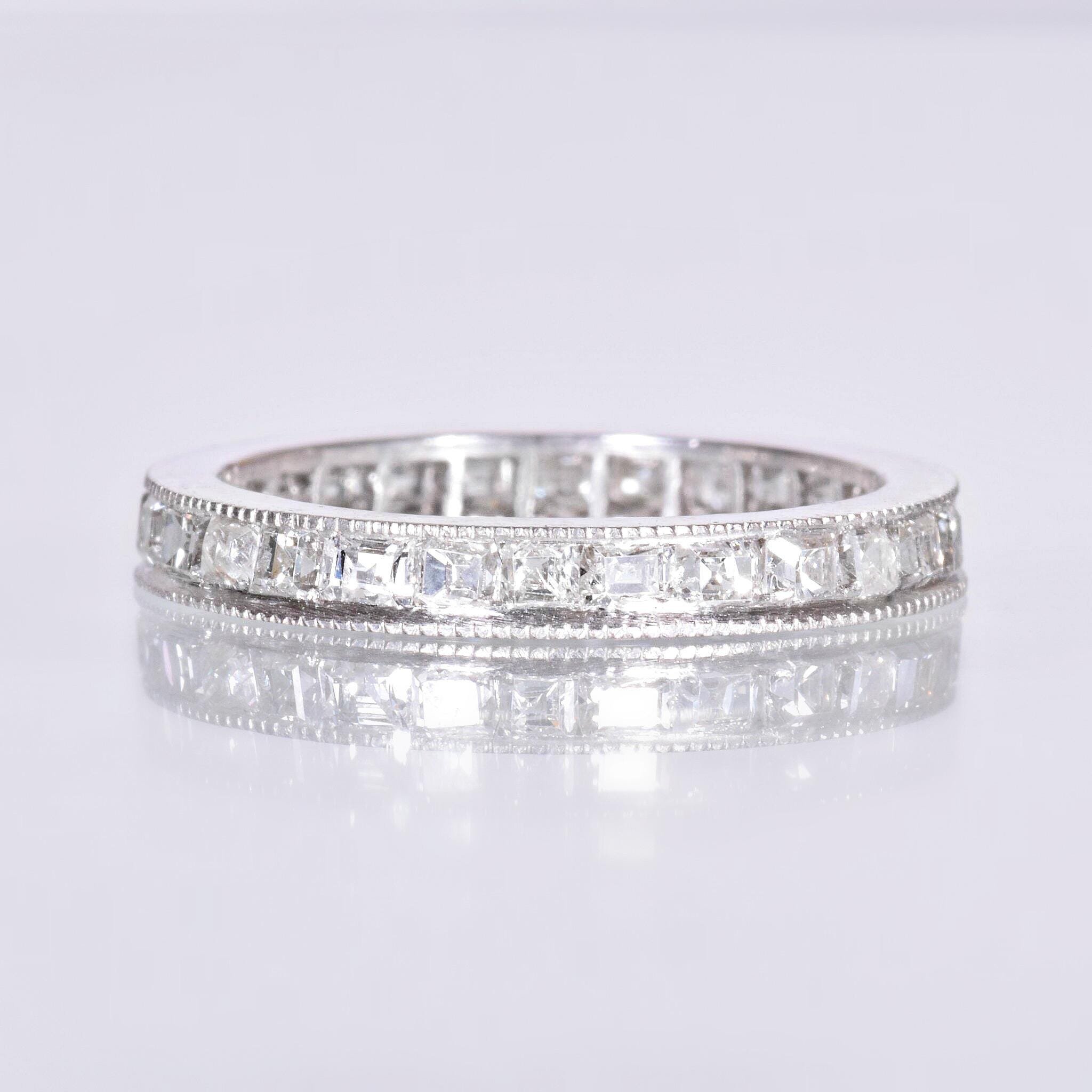 Antique Wedding Band - Antique Art Deco Platinum Step Cut Diamond Eternity Band Art Deco Platinum 28 Step Cut Diamonds =1.55ct VS/G-I Ring Size 4.75 Band measures approximately 2.5mm wide.