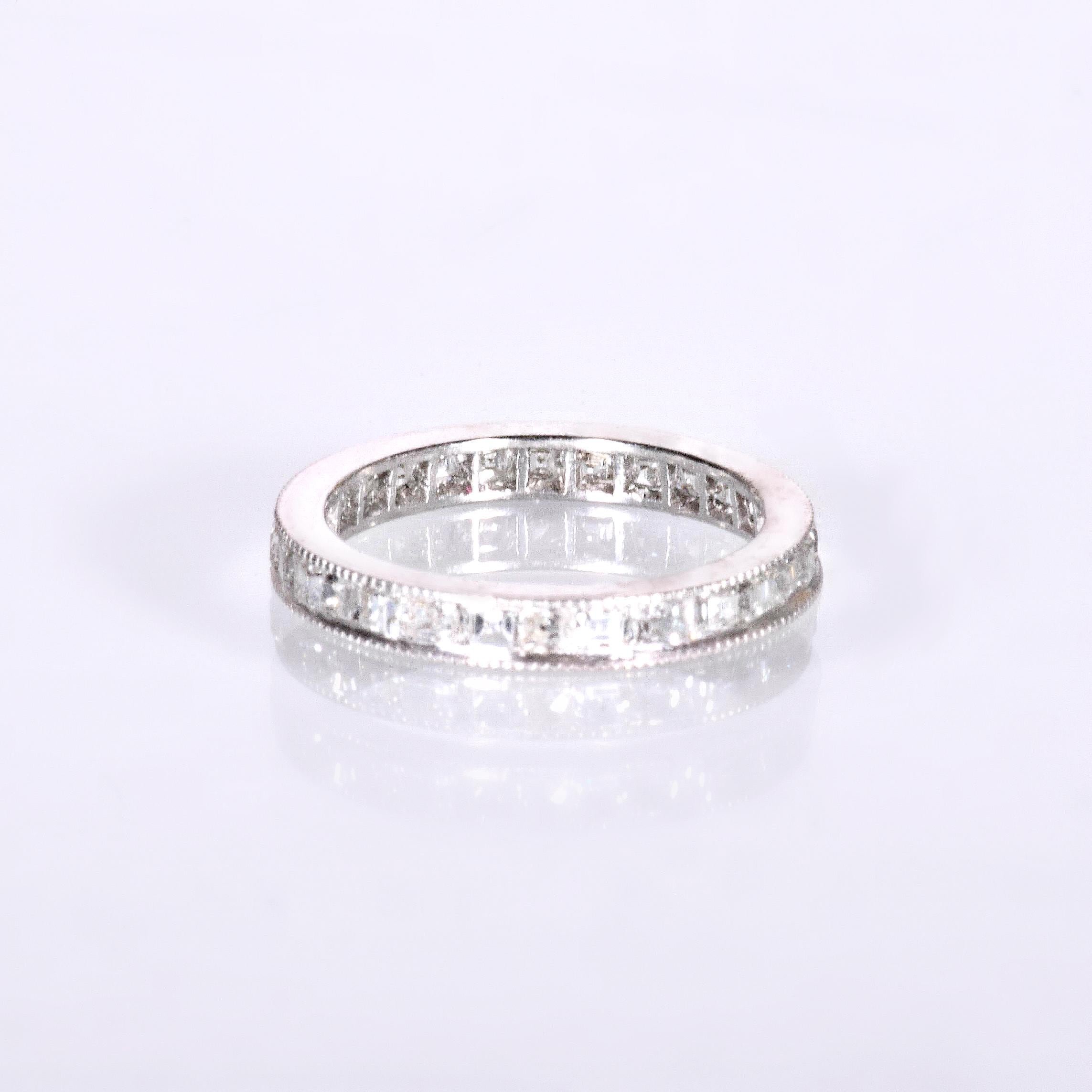 Antique Wedding Band - Antique Art Deco Platinum Step Cut Diamond Eternity Band Art Deco Platinum 28 Step Cut Diamonds =1.55ct VS/G-I Ring Size 4.75 Band measures approximately 2.5mm wide.