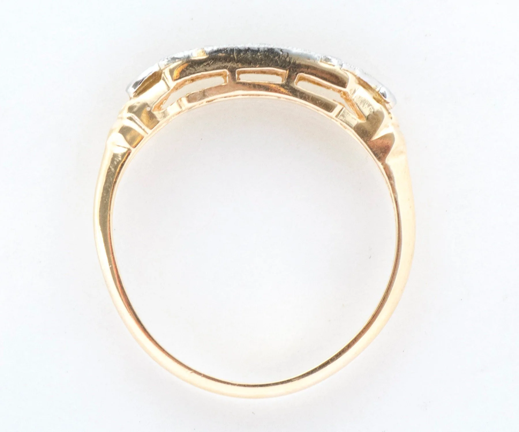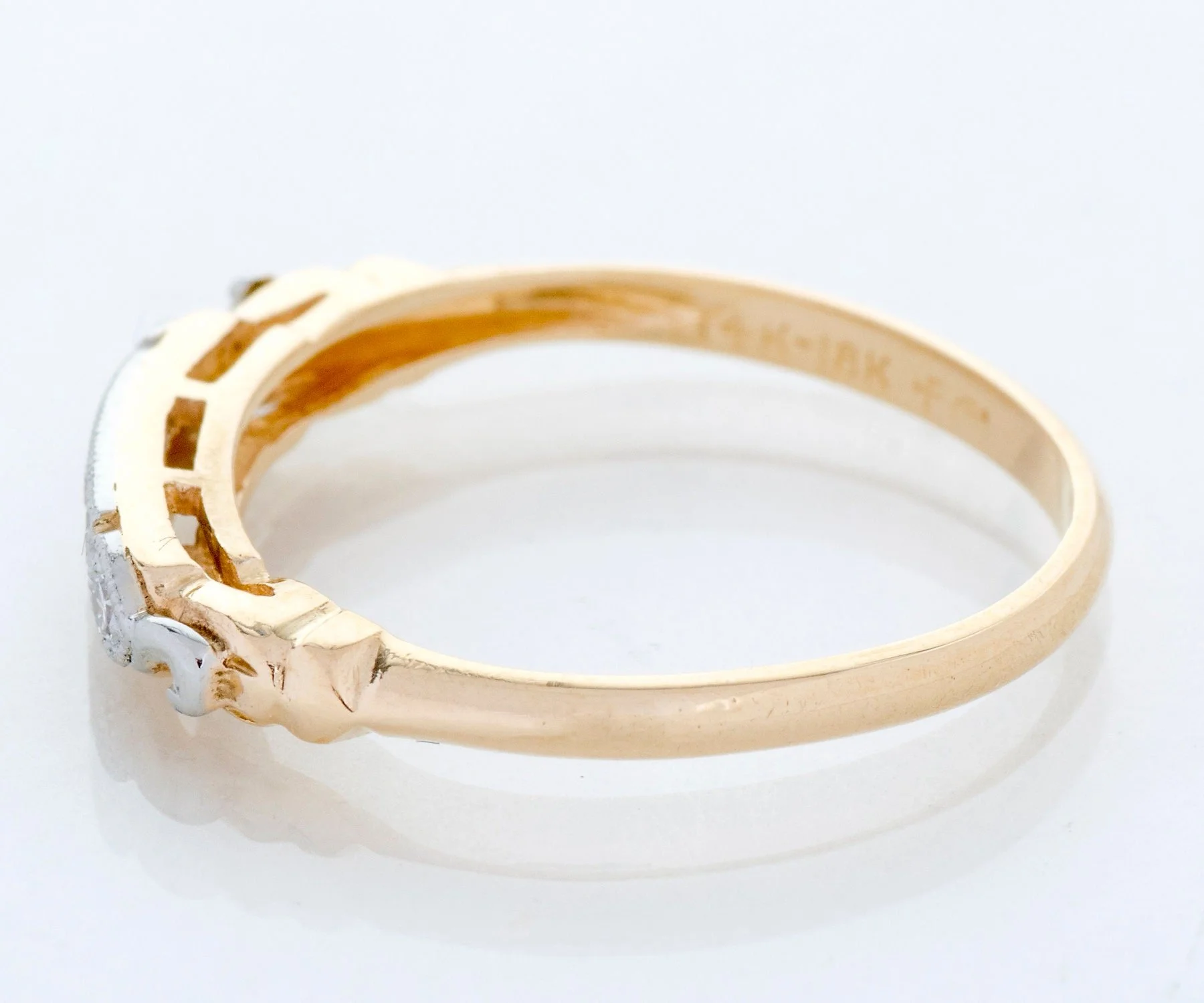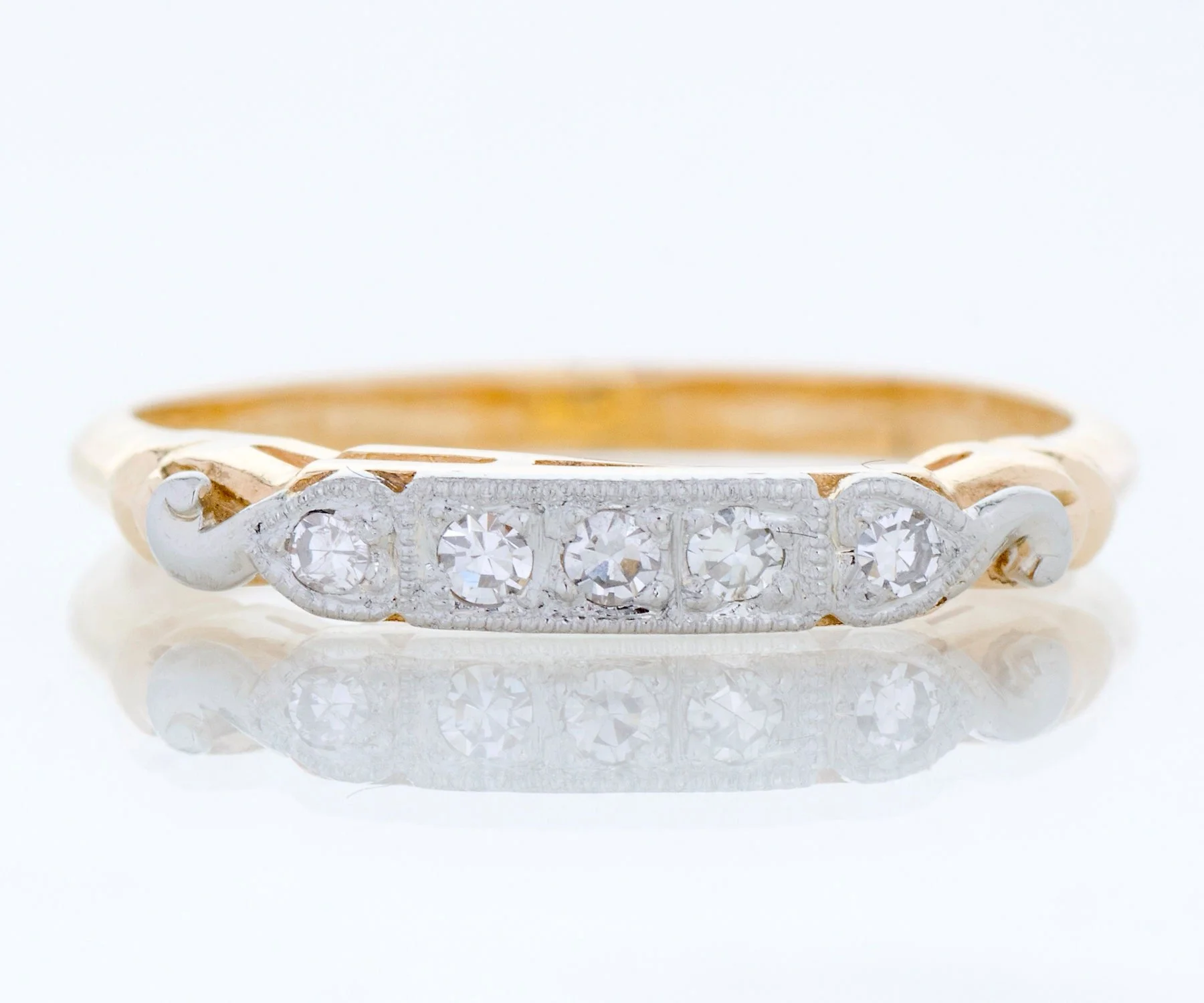 Antique Wedding Band - Antique Art Deco Two-Tone Diamond Wedding Band 1930's 18k & 14k Yellow & White Gold 5 Single Cut Diamonds =.10ct VS1-VS2/G-H Ring Size 5.75 (sizable) Band measures approximately 2.7mm at center, back of band is 1.8mm wide.