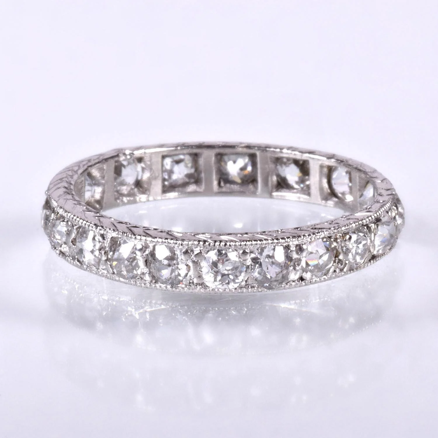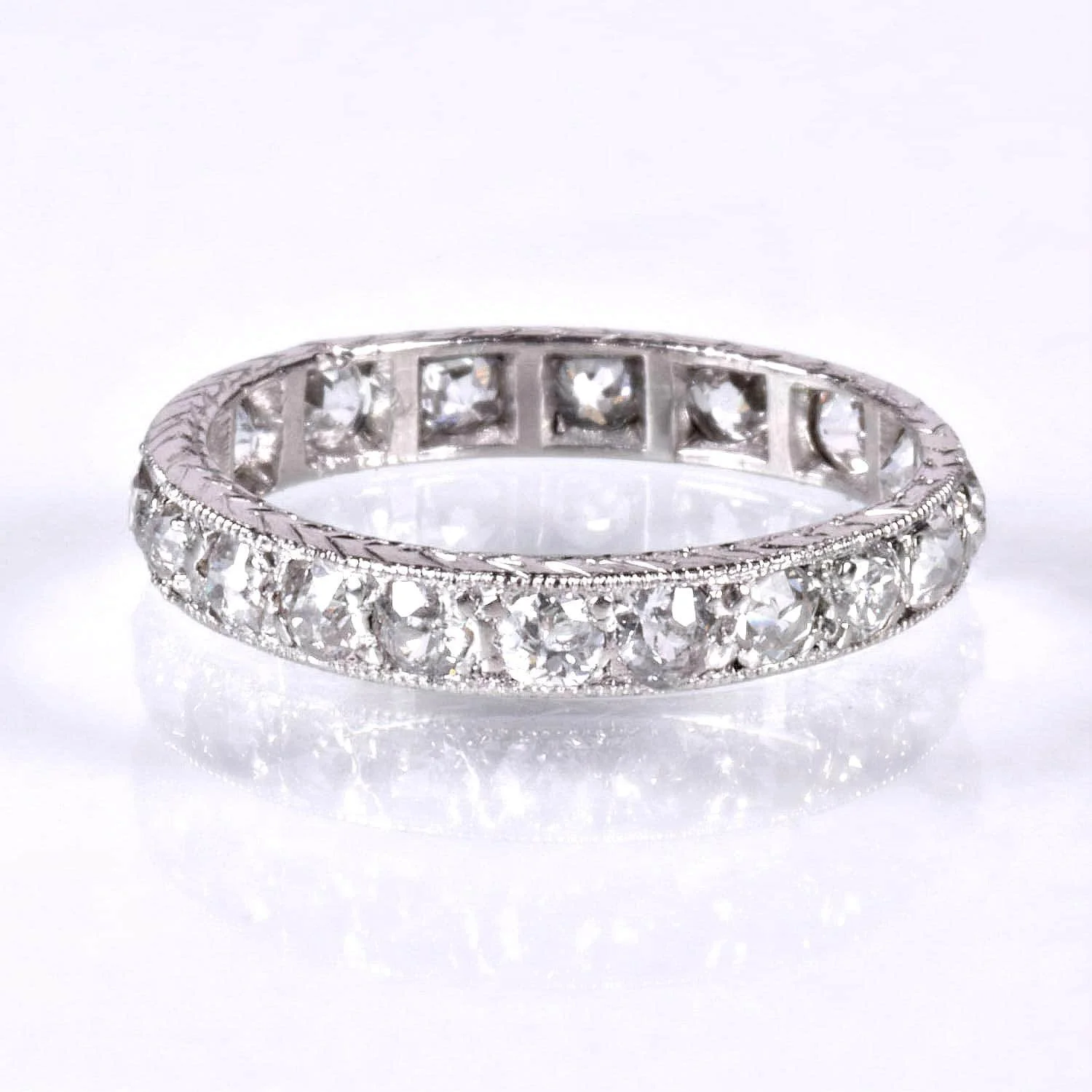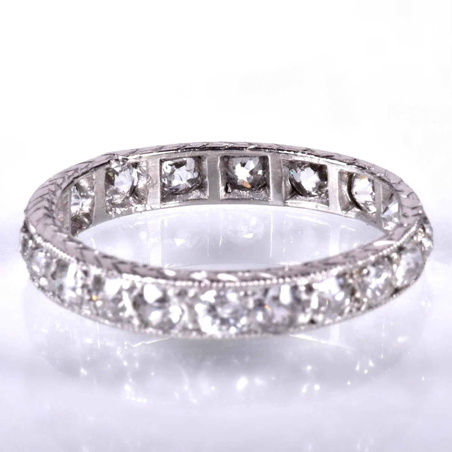 Antique Wedding Band - Antique Platinum 1.20ctw European Cut Diamond Eternity Band