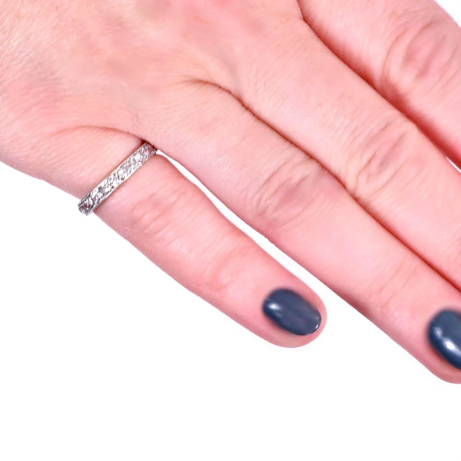 Antique Wedding Band - Antique Platinum 1.20ctw European Cut Diamond Eternity Band Platinum 19 European Cut Diamonds =1.20cts VS2-SI2/G-I Ring Size 4.5 Band measures approximately 3mm wide.